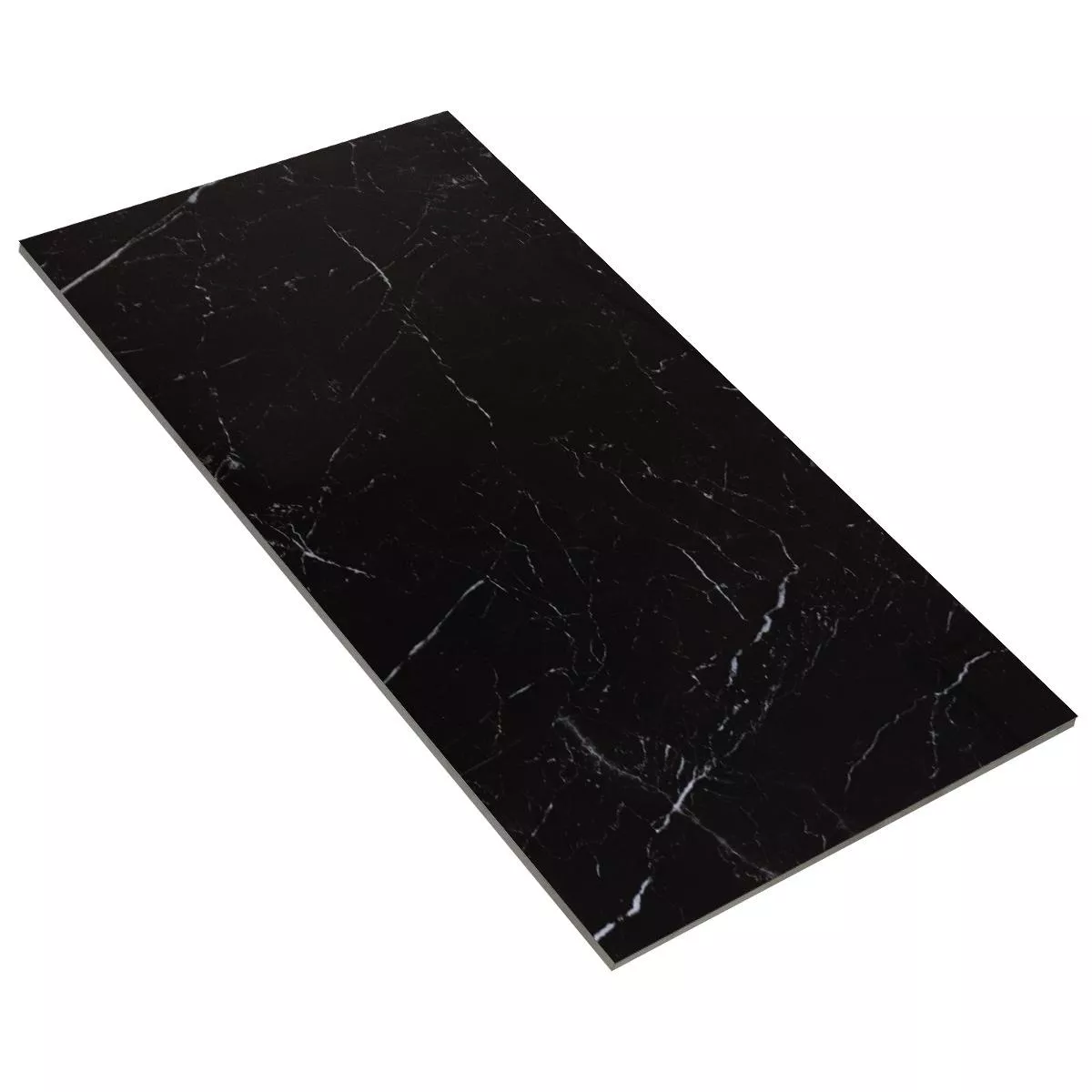 Bodenfliese Cardiff Marmoroptik Poliert Schwarz Weiss 60x120cm