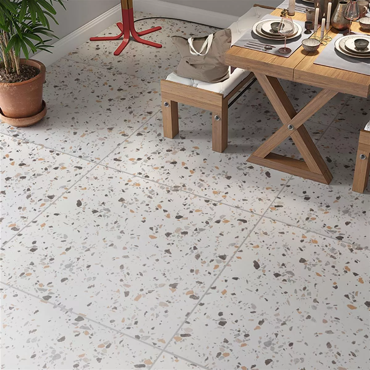 Die matte Oberfläche betont nicht nur die Retro- und Steinoptik, sondern unterstreicht auch die glasierte Beschichtung, die nicht nur visuell ansprechend ist, sondern auch die Verwendung in Verbindung mit Fußbodenheizungen ermöglicht.