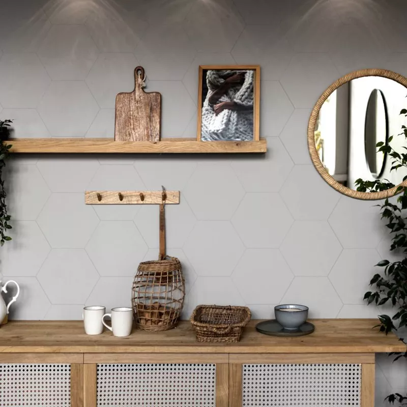 Bodenfliesen Loire Hellgrau Sechseck Strukturiert 23x27 cm