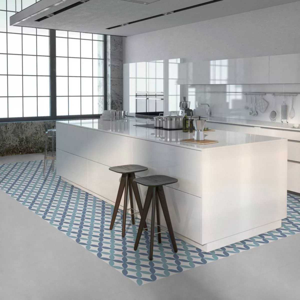 Bodenfliesen Zementoptik Atlantica DaVinci Blau Weiß