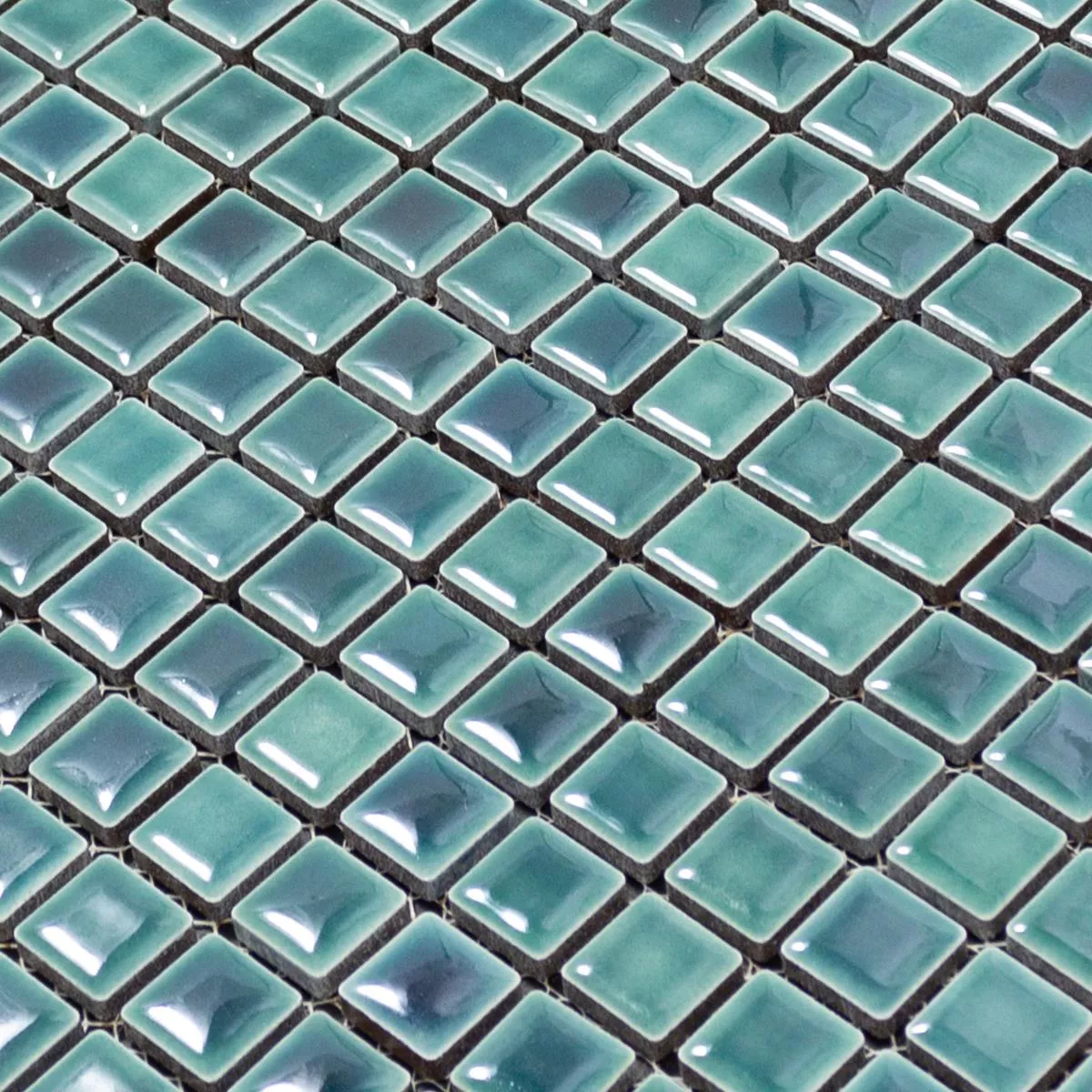 Die Keramikmosaik Fliese Lahti in den Farben Türkis und Grün ist eine elegante und praktische Wahl für verschiedenste Innenräume. Mit ihrer glänzenden Oberfläche verleiht sie Duschwänden, Küchen, Badezimmern, Fluren, Wohnzimmern, Abstellräumen und Waschräumen eine moderne Note.