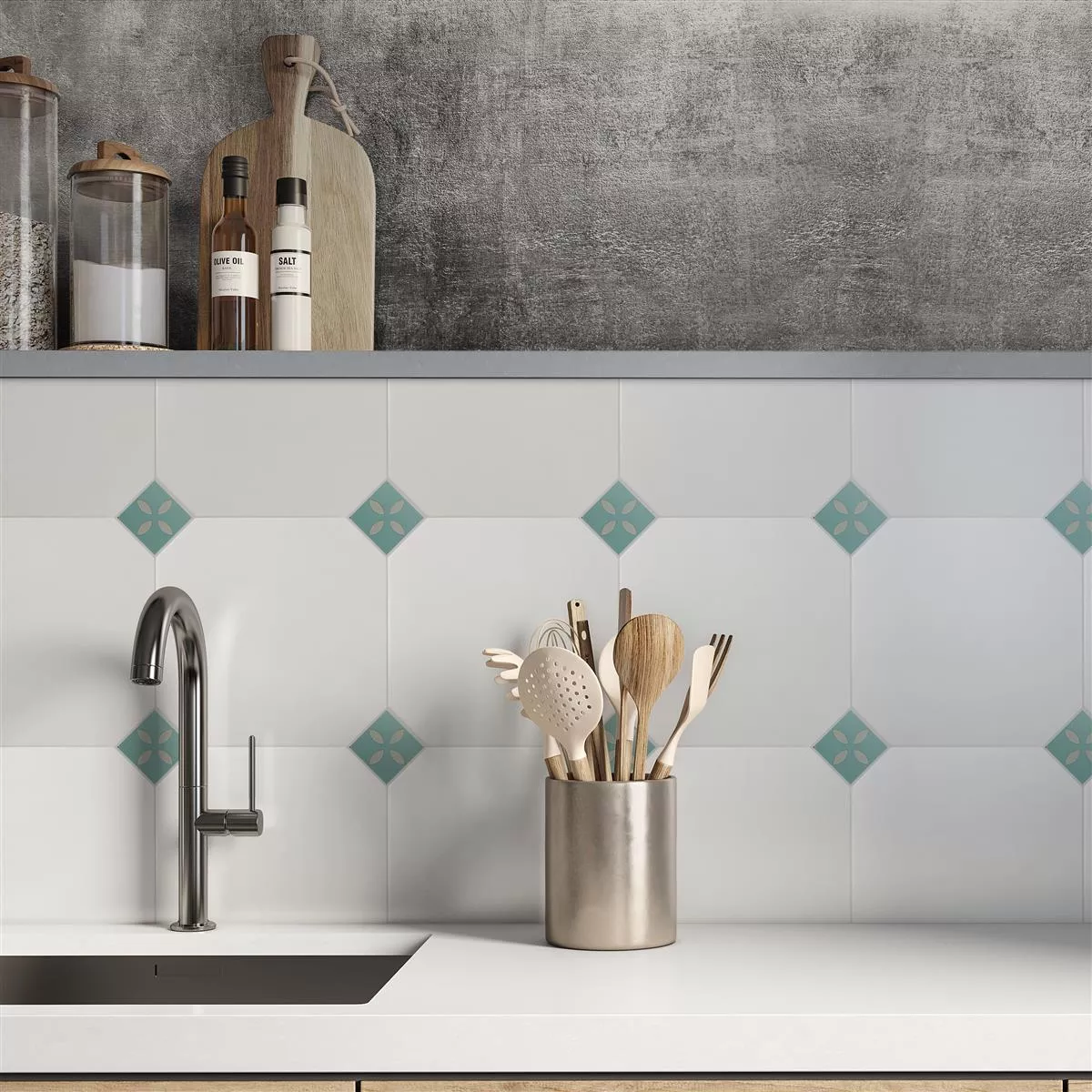 Feinsteinzeug Fliesen Genexia Decor Türkis Einleger - Frische Farbakzente mit Retro-Charme