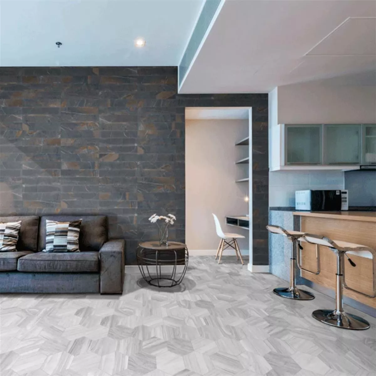 Verleihen Sie Ihren Räumen ein neues Gesicht und schaffen Sie eine Atmosphäre zum Wohlfühlen mit den Feinsteinzeug Fliesen Hexwood Hexagon Grau.