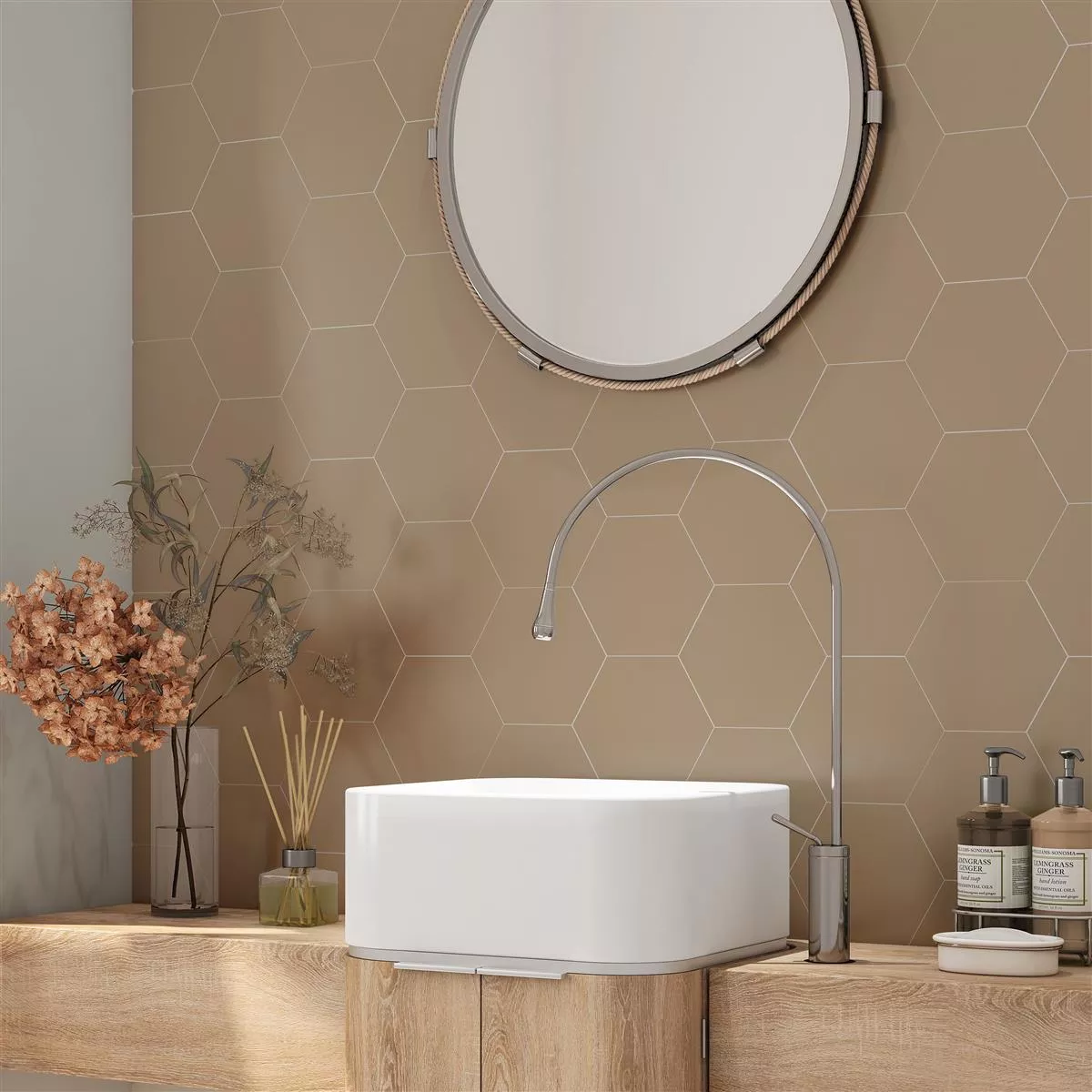 Die Feinsteinzeug Fliesen "Modena Hexagon Uni Sand" vereinen Ästhetik und Funktionalität in einem. Mit einem markanten Hexagon-Design schaffen sie eine einzigartige Atmosphäre in Ihrem Nassbereich, der Dusche, im Bad, in der Küche, im Wohnraum und im Innenbereich. Mit einer Stärke von 10mm bieten sie eine solide Basis, während die Rutschhemmung R10 für Sicherheit sorgt.