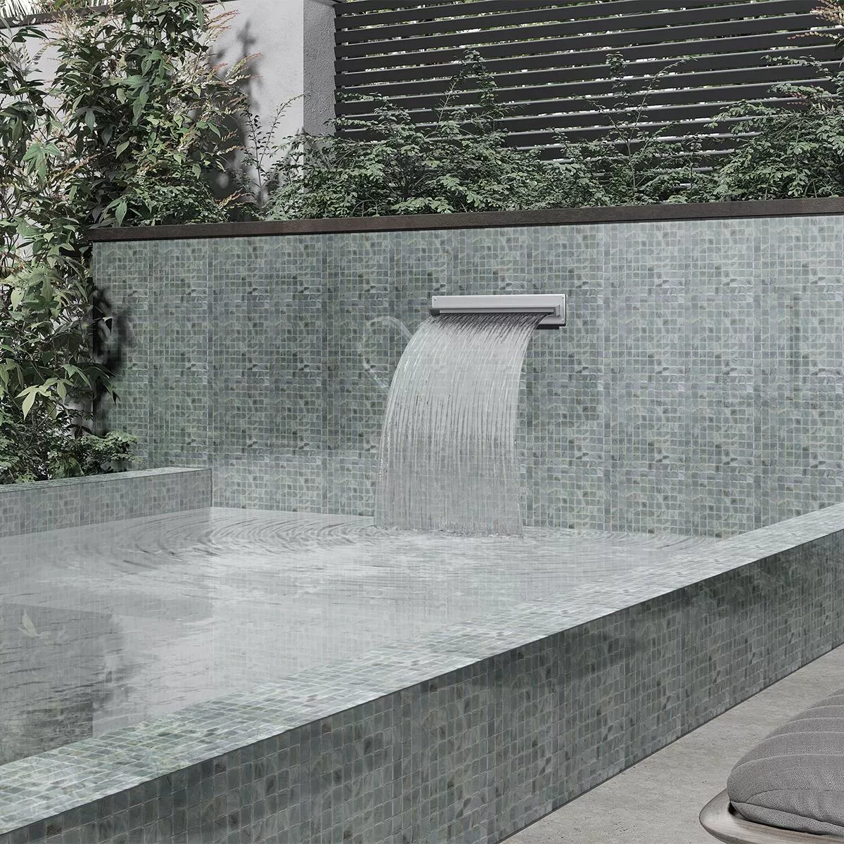 Die Alassio Pool Mosaikfliese in Grau kombiniert zeitlose Eleganz mit robusten Eigenschaften und ist ideal für vielfältige Gestaltungsmöglichkeiten. Mit einer Matte von 31,6 x 31,6 cm und einer Stärke von 4 mm ist diese Mosaikfliese sowohl für Wände als auch für Böden geeignet. Sie besteht aus hochwertigem Glas und Ecoglas, das eine glänzende Natursteinoptik bietet und jedem Raum eine moderne und edle Ausstrahlung verleiht.