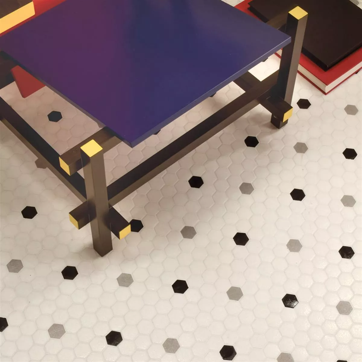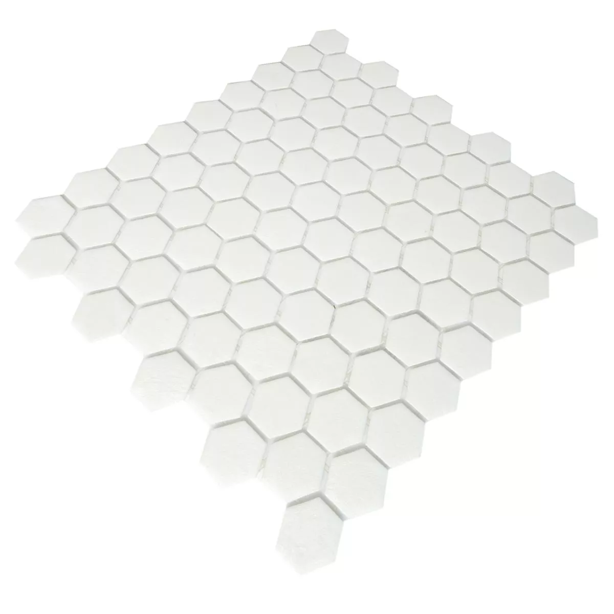 Die Mosaikfliesen aus der Hexagonal Serie sind mit einer matten Oberflächenbeschaffenheit versehen und bieten eine hohe Rutschfestigkeit. Sie sind zudem besonders umweltfreundlich, da sie bis zu 59% aus recyceltem Altglas bestehen. Die Rückseite jeder Fliese ist auf ein Polyurethan Netz verklebt, was die Verlegung erleichtert und für besondere Haltbarkeit sorgt.