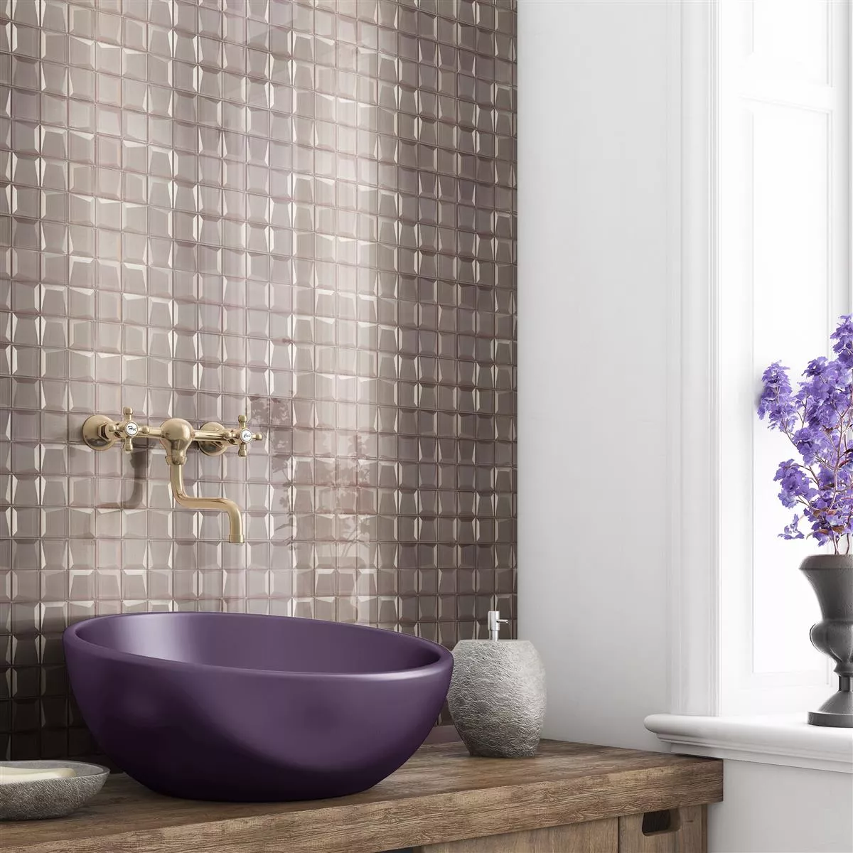 Entdecken Sie mit den Glasmosaik Fliesen Venedig 3D Beige eine innovative Verbindung von Stil und Funktionalität. Die warmen Farben Braun und Beige sowie die glänzende Oberfläche schaffen eine zeitlose Eleganz. Mit einer Steingröße von 48x48mm und einer Stärke von 8mm bieten diese Mosaikfliesen nicht nur visuelle Raffinesse, sondern auch Robustheit.