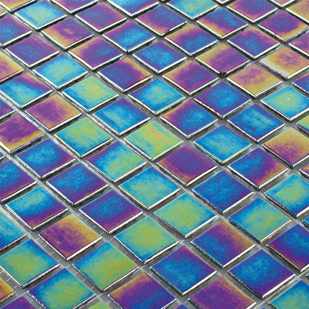 Das Glasmosaik Williams Perlmutt Effekt in den faszinierenden Farben Schwarz, Grün und Lila bringt eine luxuriöse Note in jeden Raum. Dieses Mosaik aus hochwertigem Glas zeichnet sich durch seine glänzende Oberfläche und den einzigartigen Perlmutteffekt aus, der dem Material einen edlen Schimmer verleiht.