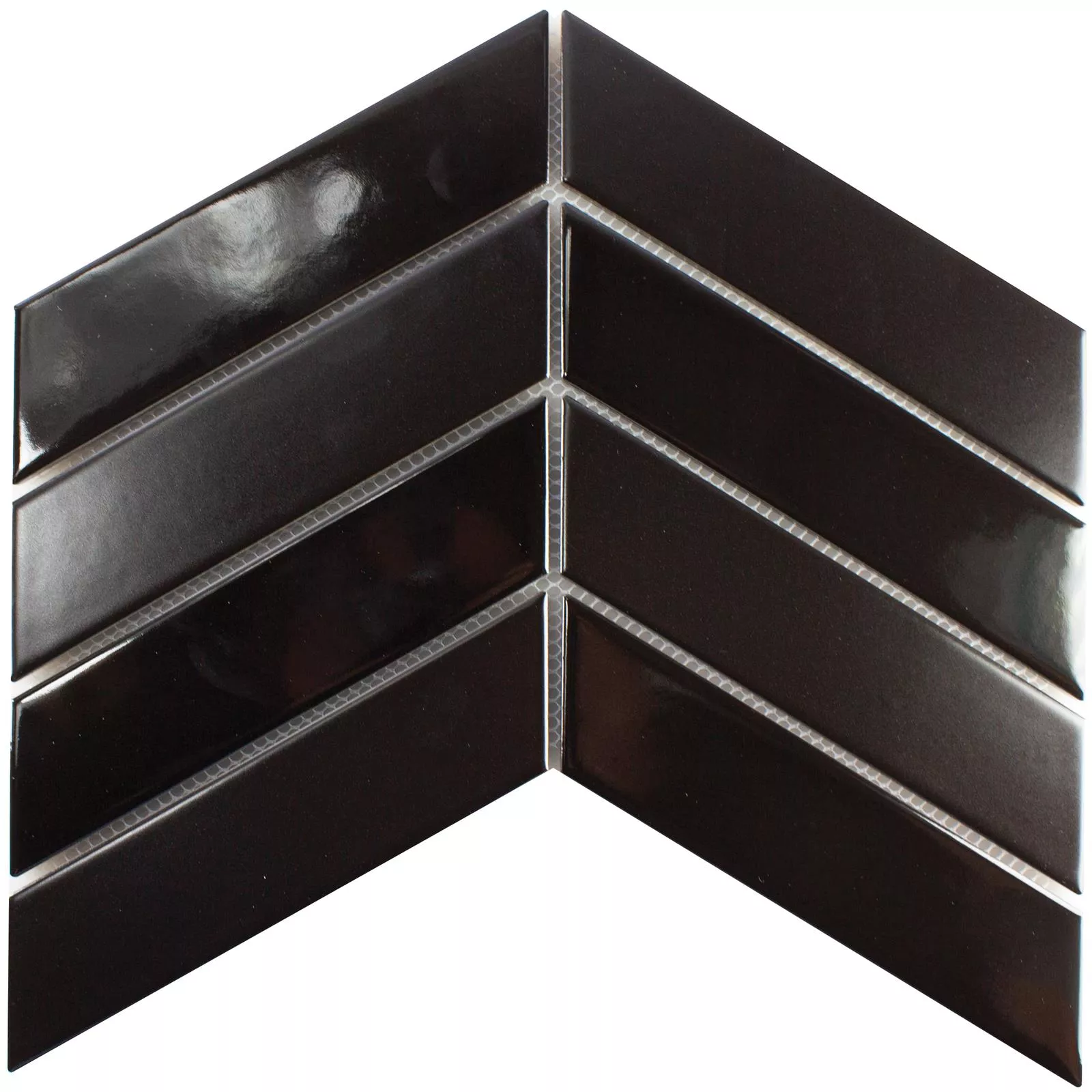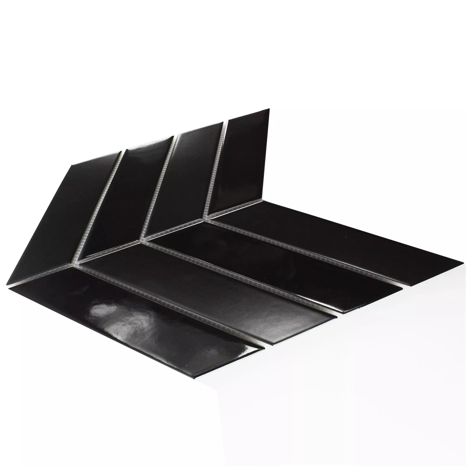 Keramik Mosaikfliese Artesia Fischgrät Schwarz Glänzend Pfeiloptik