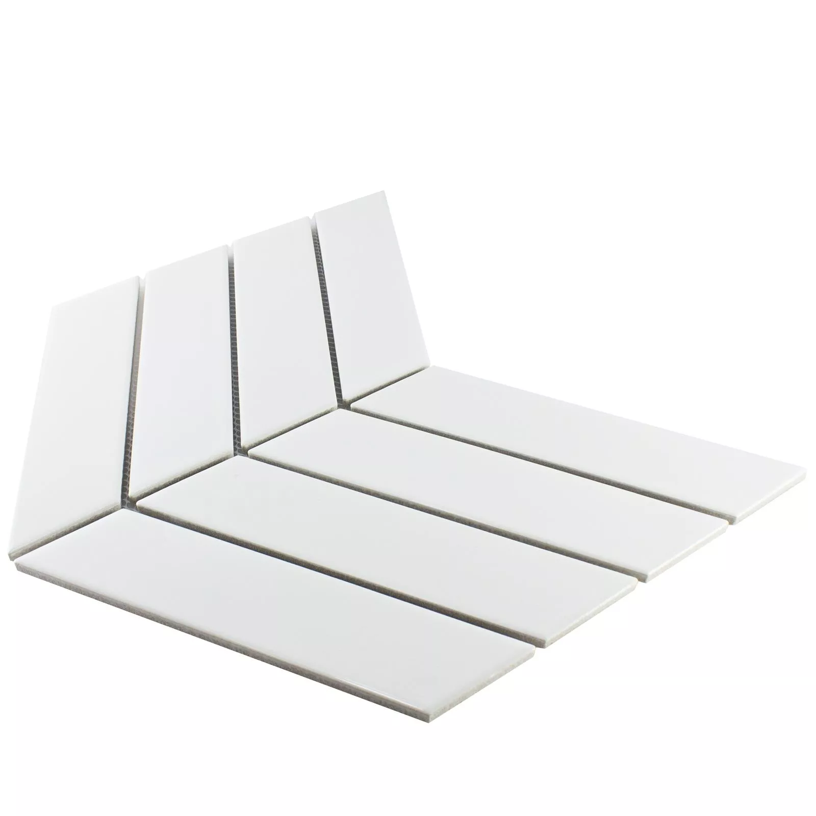 Keramik Mosaikfliese Artesia Fischgrät Weiß Matt Pfeiloptik