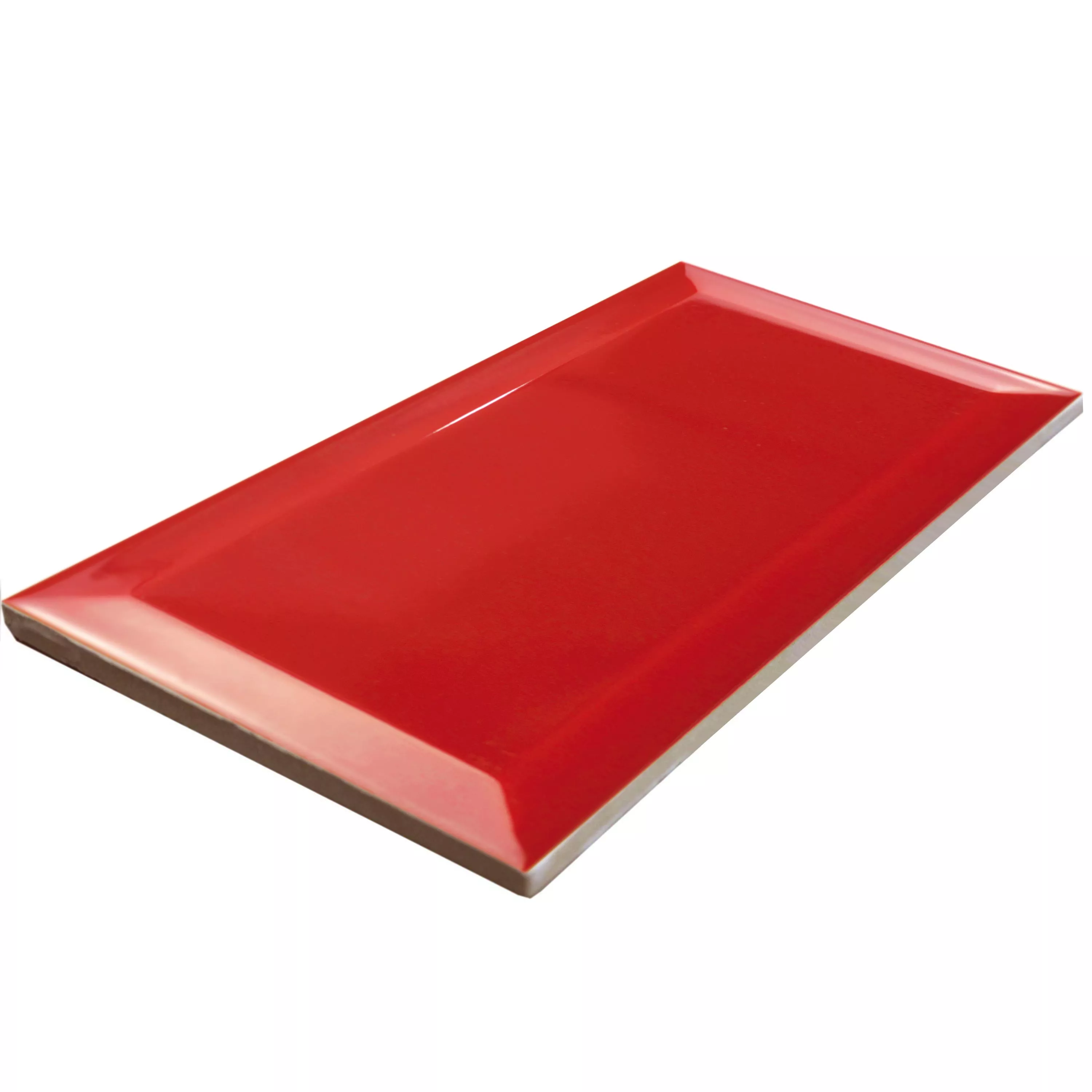 Metro Wandfliesen Brussel Facette 10x20x0,7cm Rojo