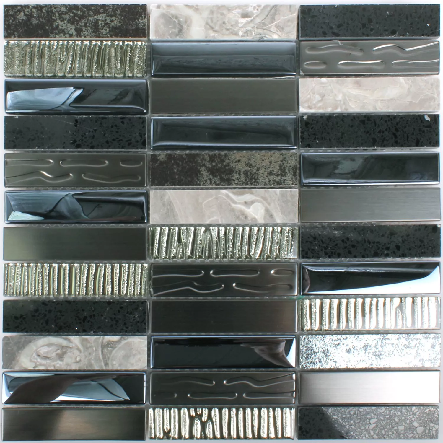 Naturstein Glas Aluminium Mosaikfliesen Akrites Schwarz