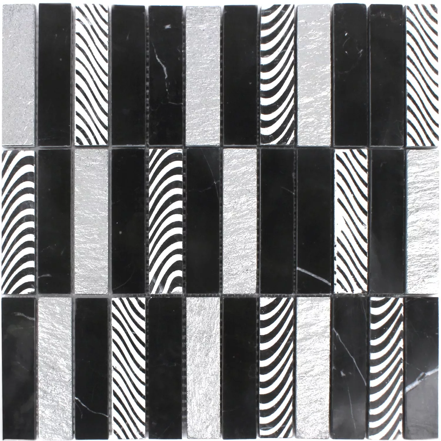 Naturstein Mosaikfliesen Carving Schwarz Grau Silber