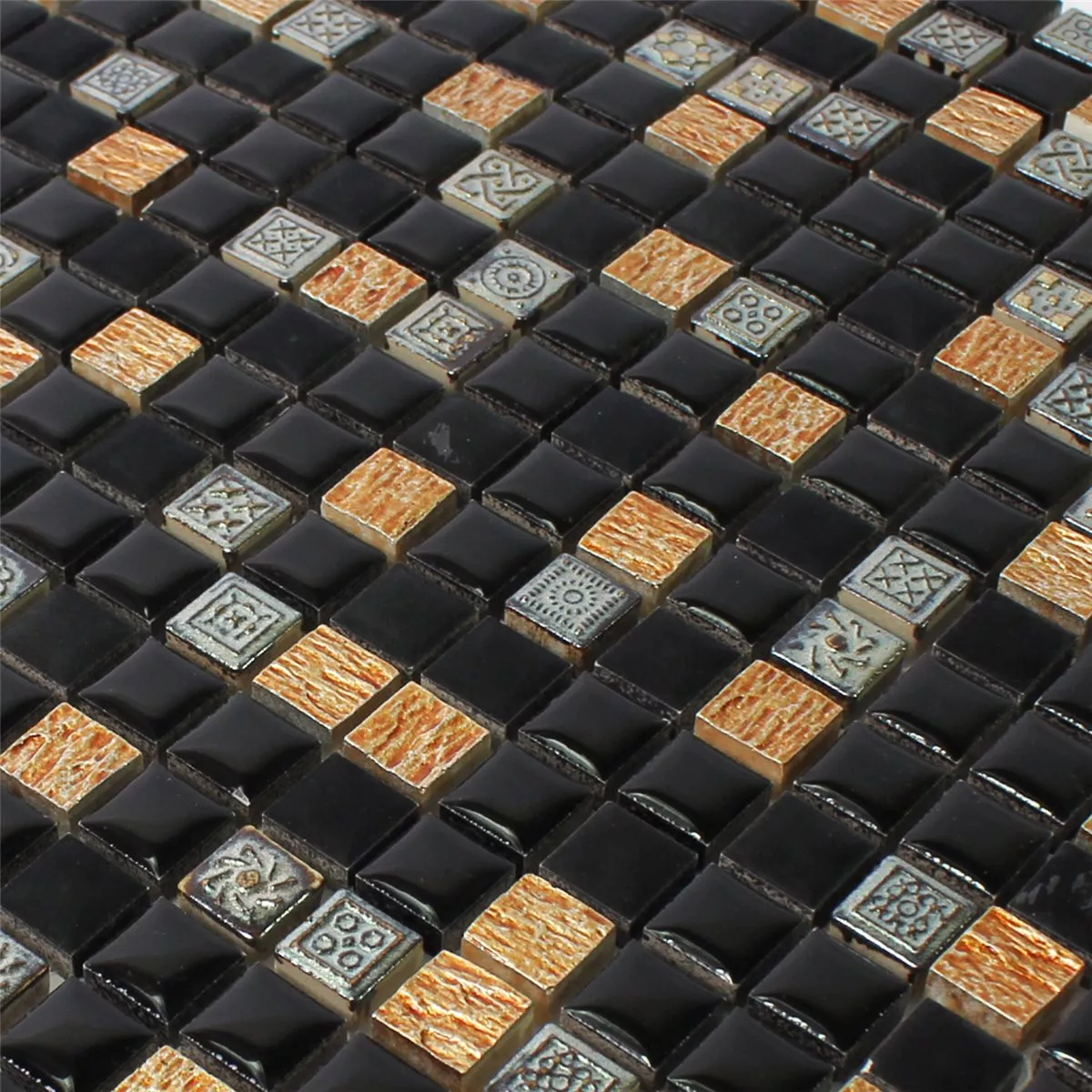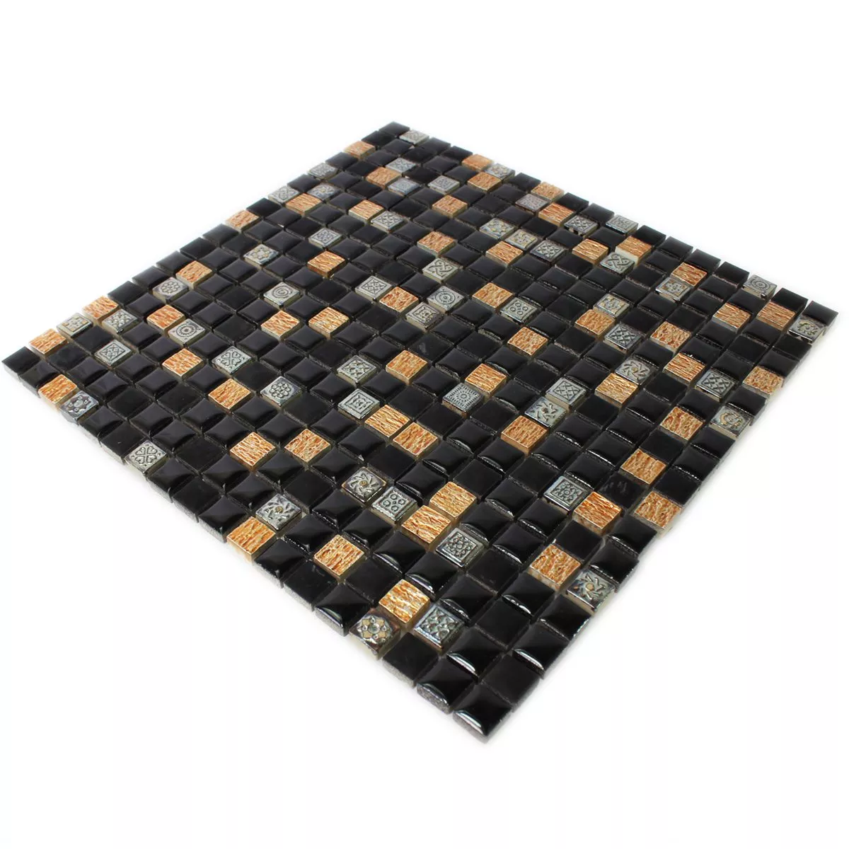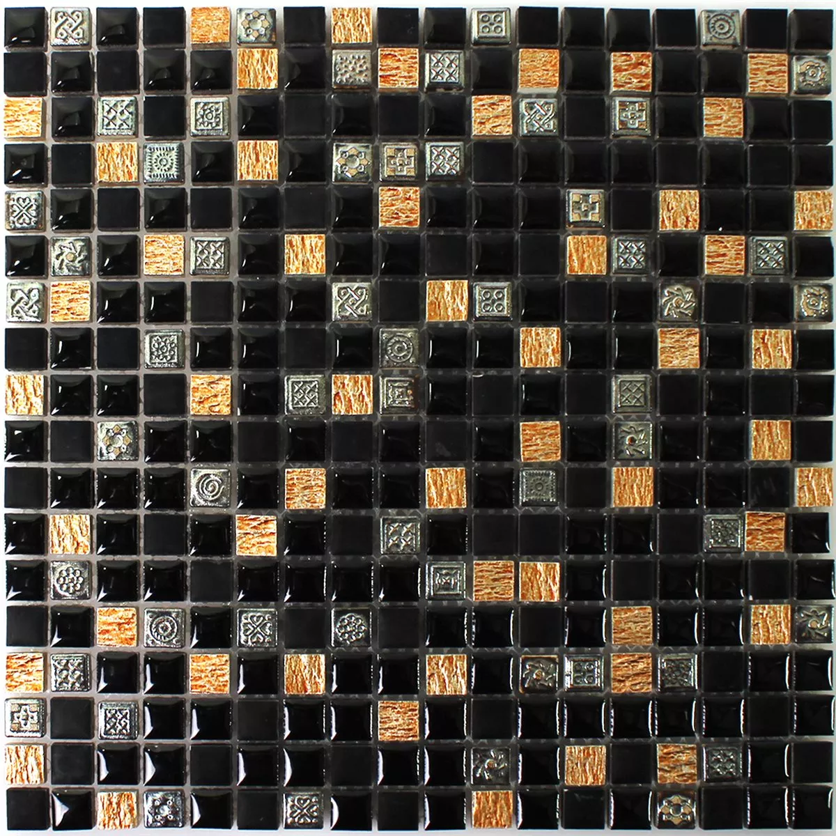 Naturstein Resin Ornament Mosaikfliesen Halesia Schwarz Kupfer Silber