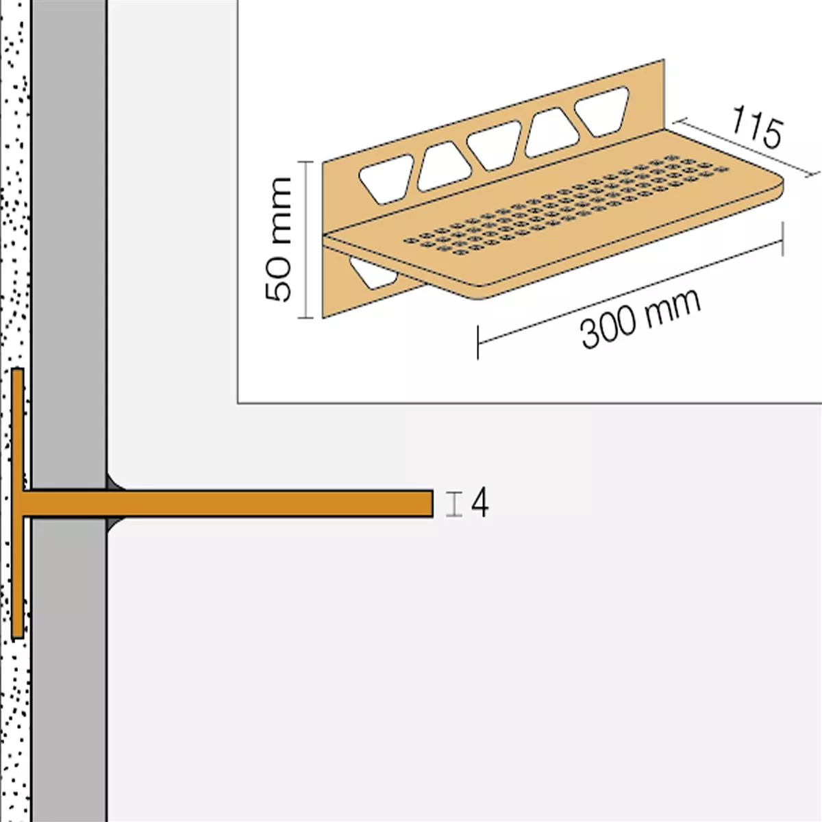 Schlüter-SHELF-W-hyllorna mäter 30 cm × 11,5 cm och ger därför tillräckligt med plats för till exempel tvål eller kryddor.