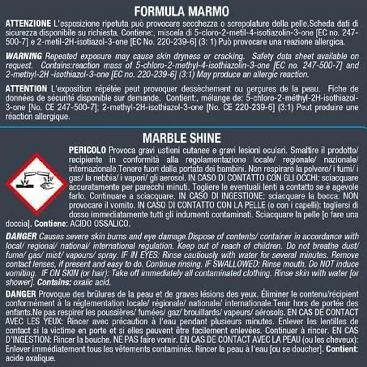 Vissa typer av marmor, som Verde Alpi, kan inte poleras med detta system på grund av deras syrabeständighet. Fungerar inte på graniter, agglomerat av kvarts och harts, syrafasta naturstenar.