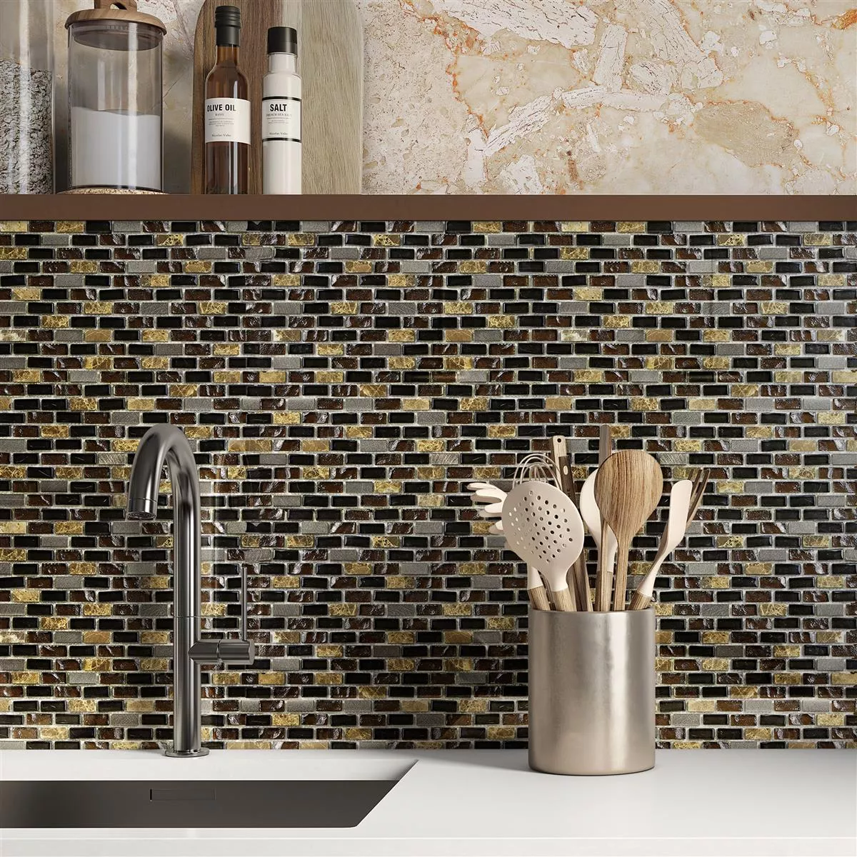 Glas Marmor Aluminium Mosaik Patterson Brun Mix