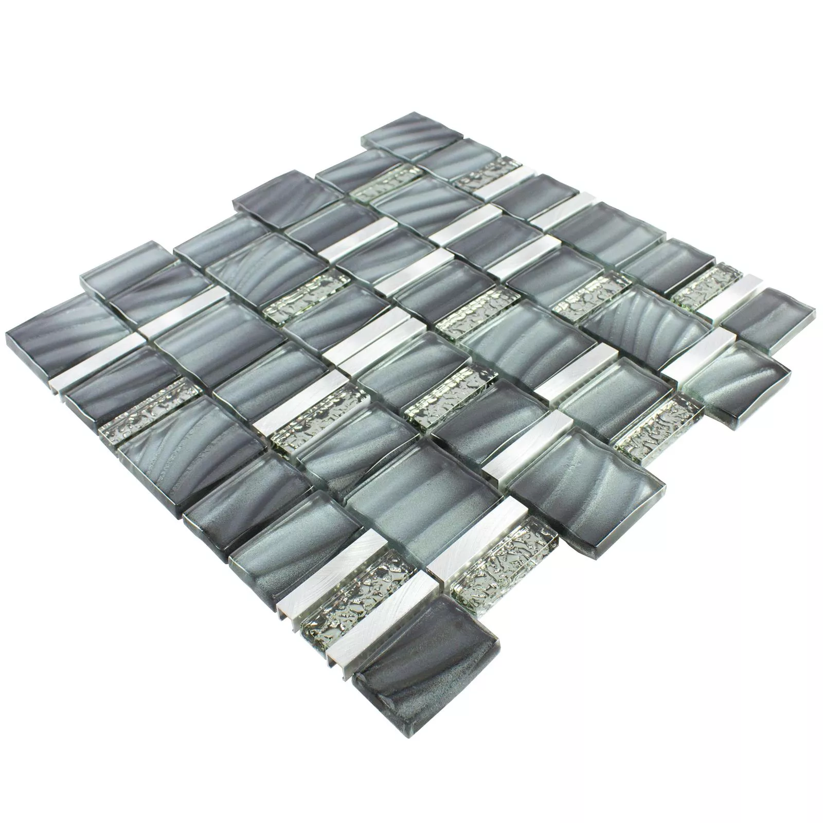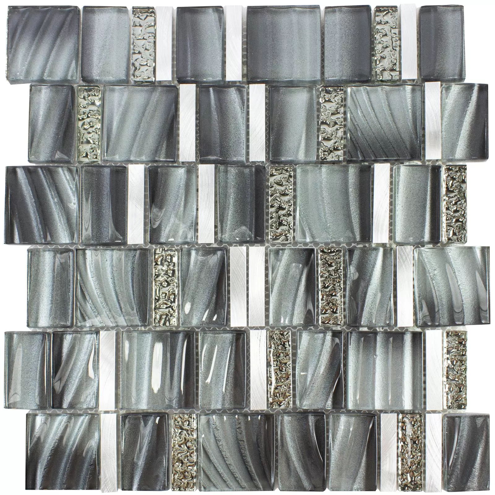 Glas Metall Mosaik Union Grå Silver