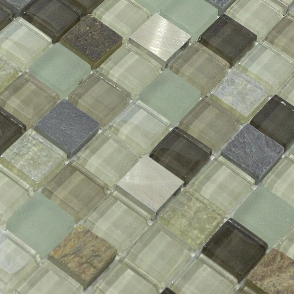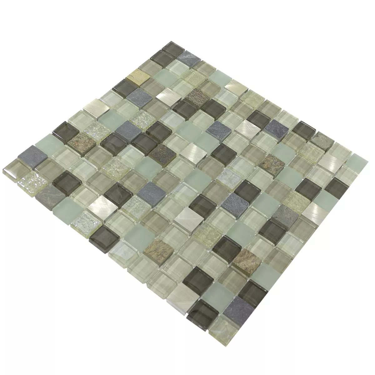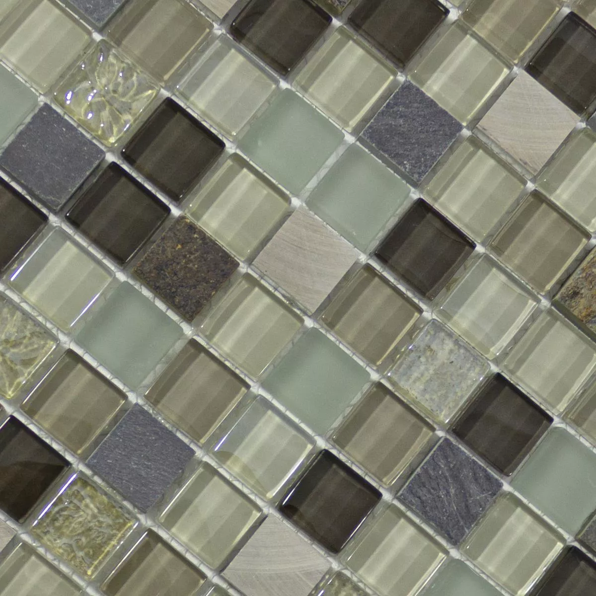 Glas Natursten Aluminium Mosaik Konoha Beige Brun