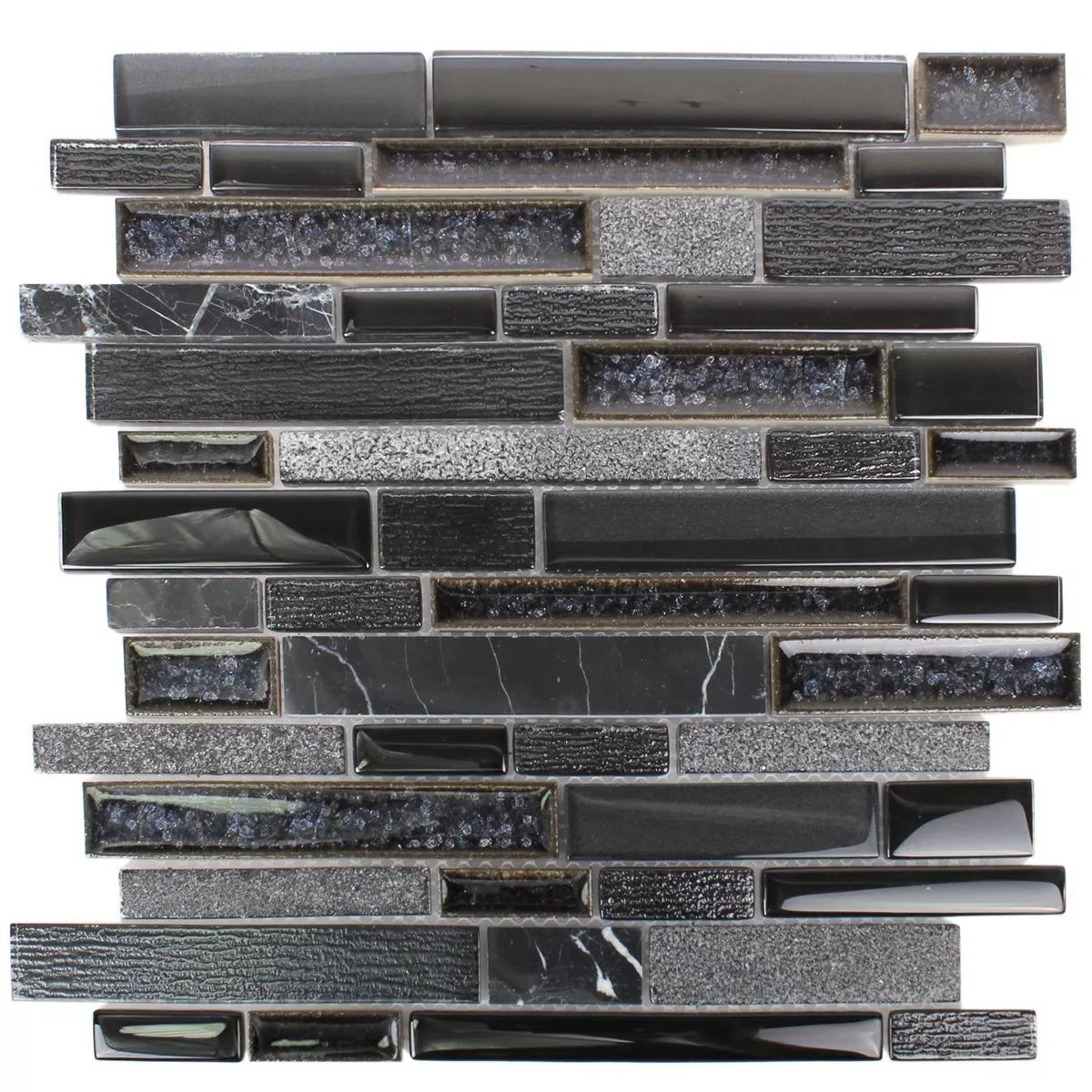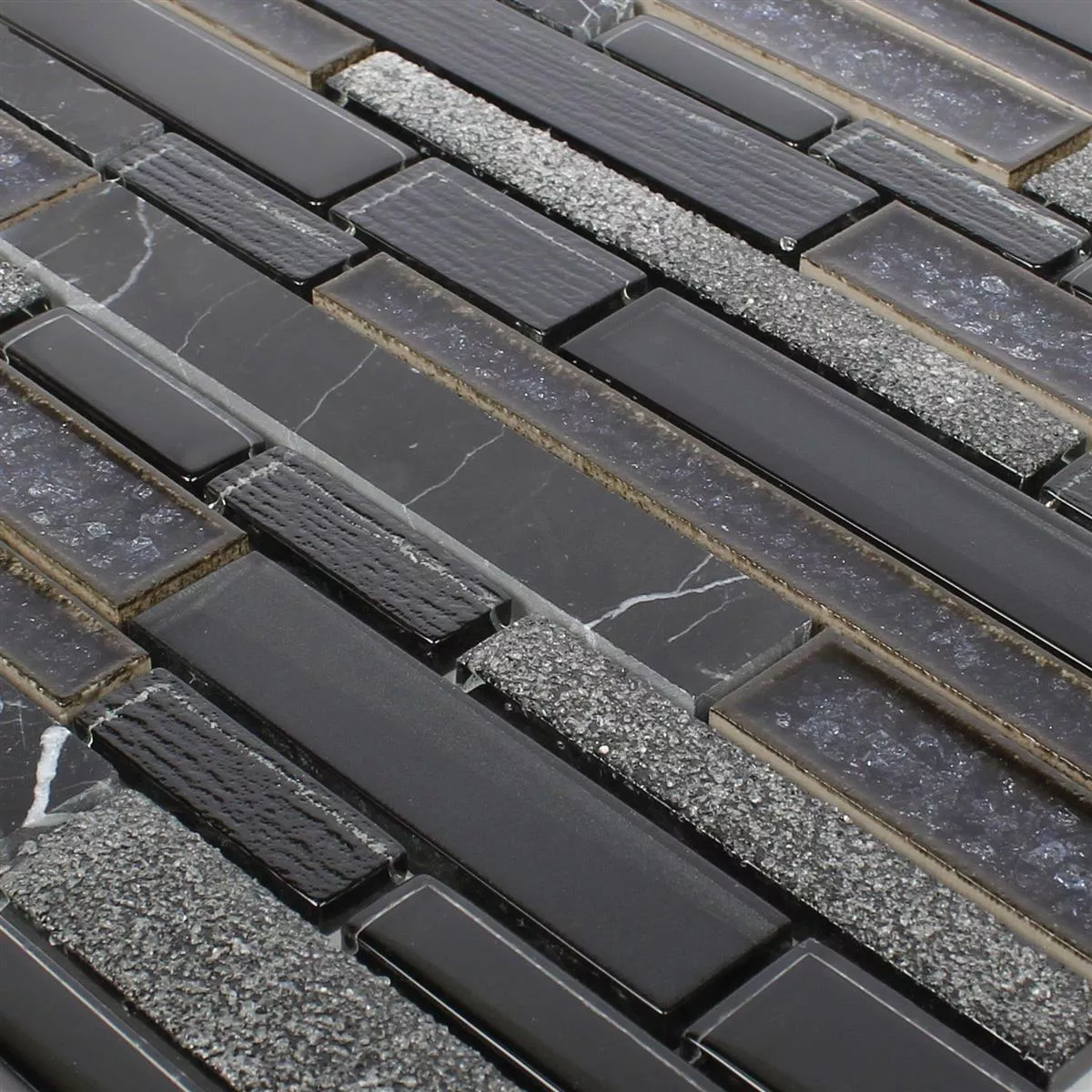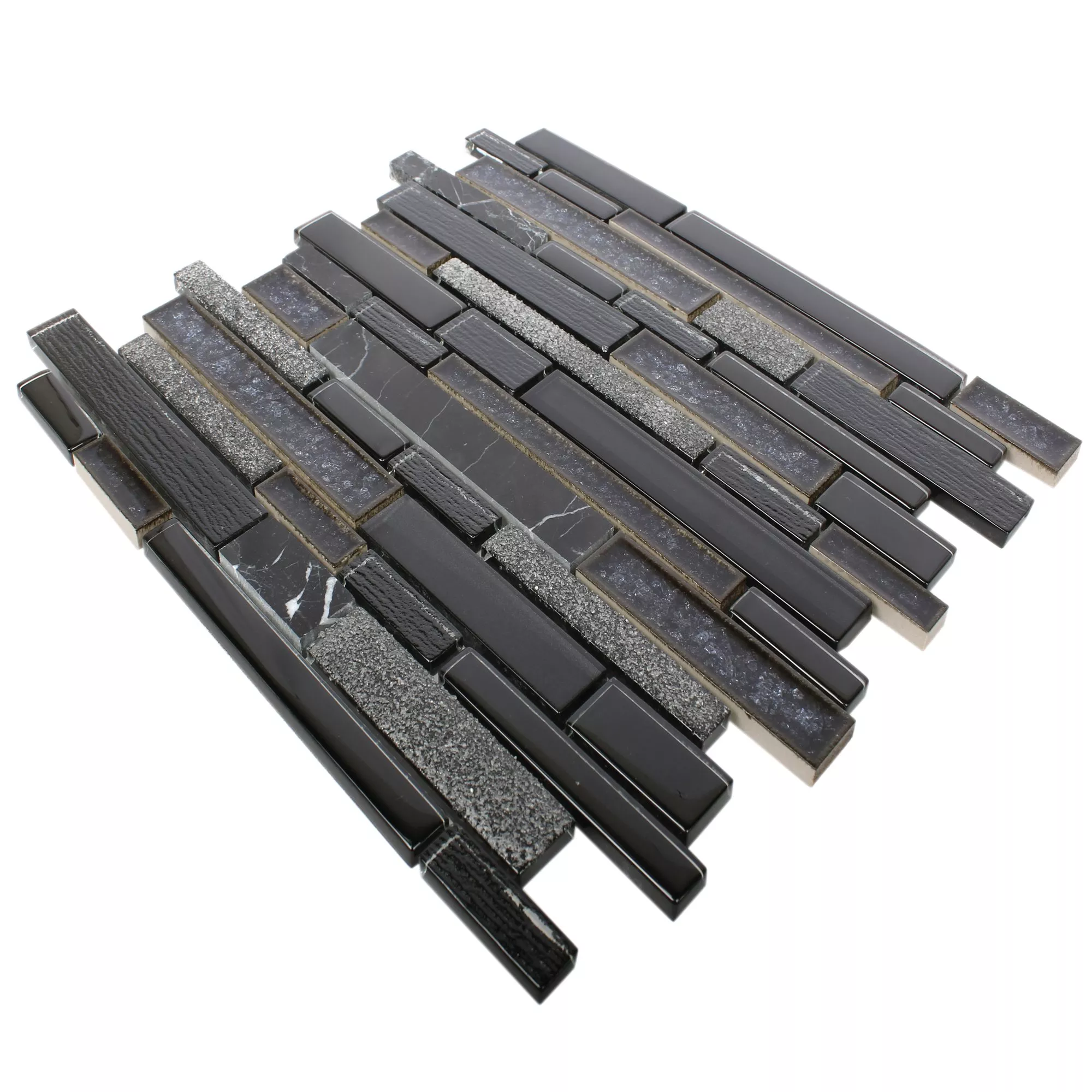 Kozan mosaikplatta i svart kombinerar elegant stil och funktionalitet. Tillverkad av natursten, glas och keramik, erbjuder den inte bara visuellt tilltalande estetik, utan också utmärkt hållbarhet. Med sitt varierande format och olika stenstorlekar – inklusive 23x48 mm, 15x148 mm och 23x98 mm – kan plattan läggas på ett mångsidigt och kreativt sätt.