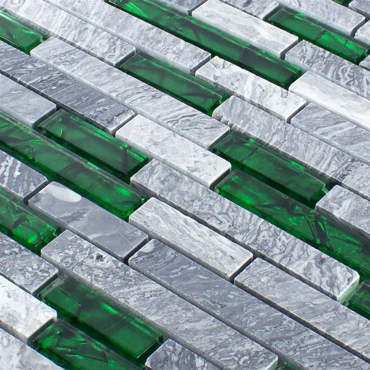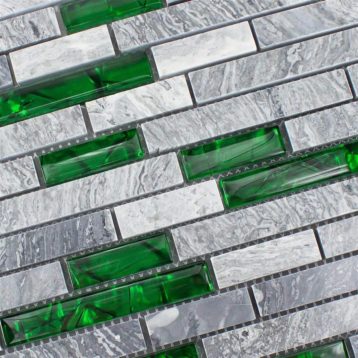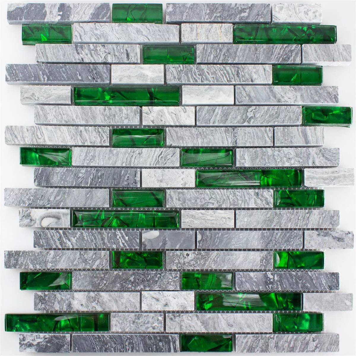 Glas Natursten Mosaik Plattor Sinop Grå Grön Brick