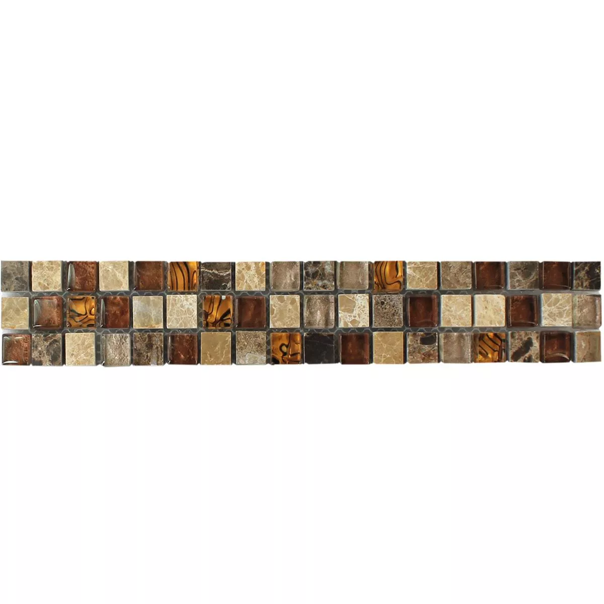 Naturstenmosaikkanten Gabonbrun är ett attraktivt alternativ för att designa interiörer, speciellt för badrum, kök och vardagsrum. Bården hålls i en varm brun ton och består av en kombination av natursten, glas och marmor. Stenstorleken är 15x15mm och ytan är blank vilket ger mosaiken ett elegant och attraktivt utseende.