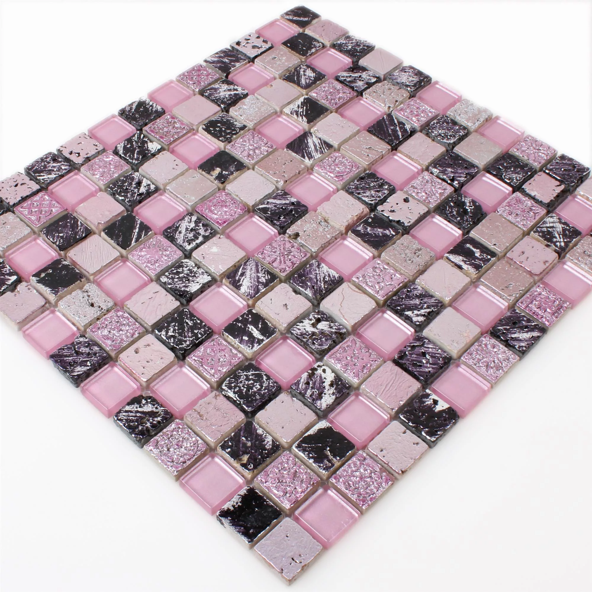 Glas Natursten Resin Mosaik Pink Mix