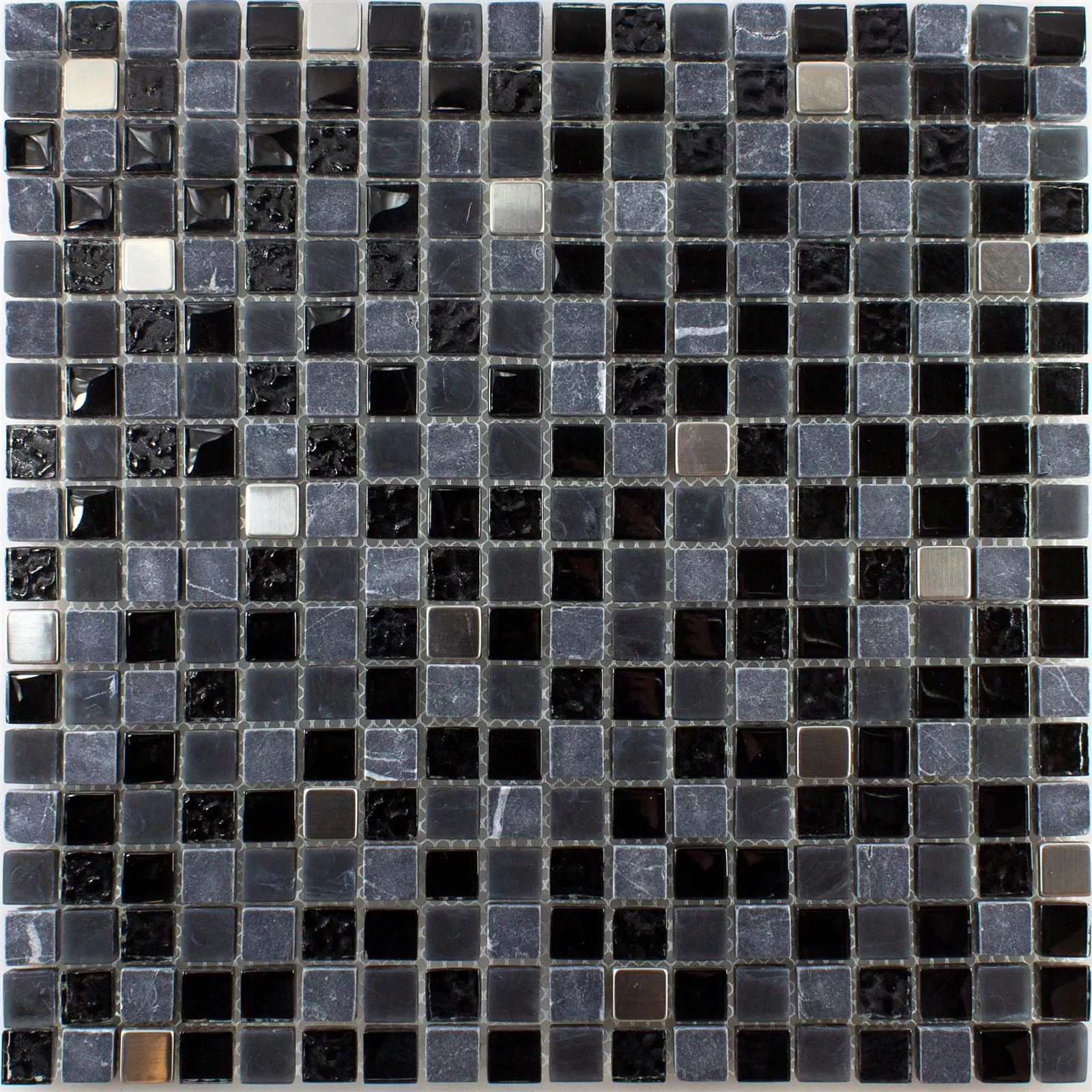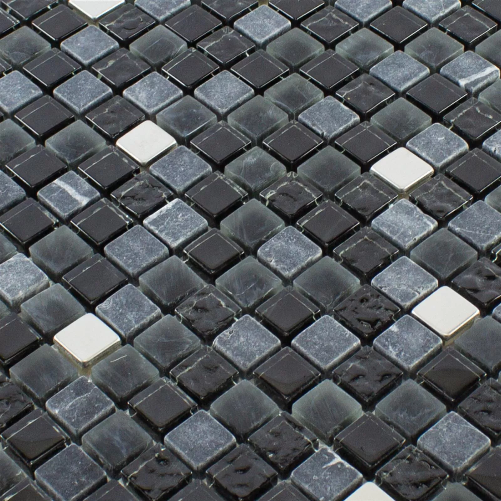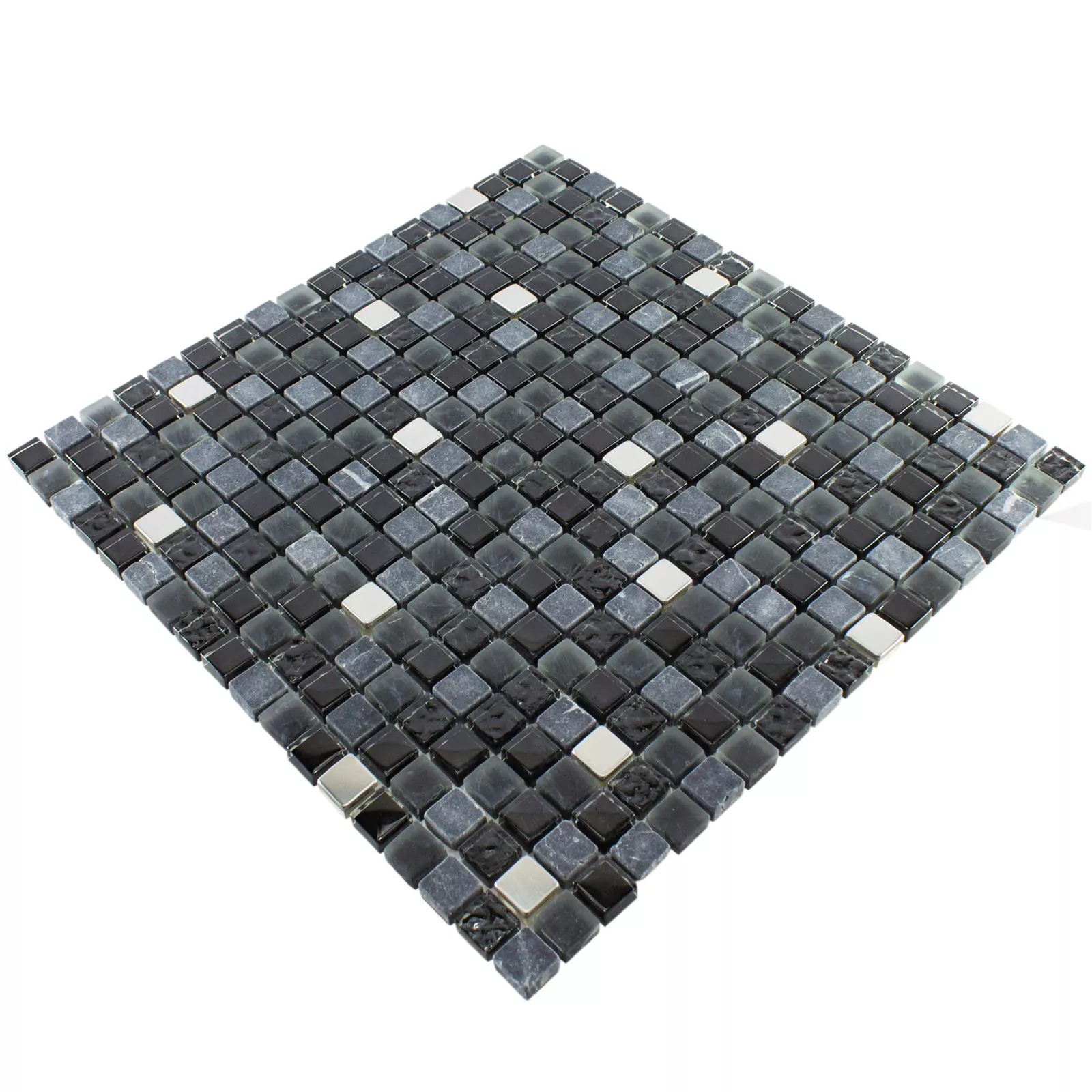 Glas Natursten Rostfritt Stål Mosaik Kosovo Svart Silver