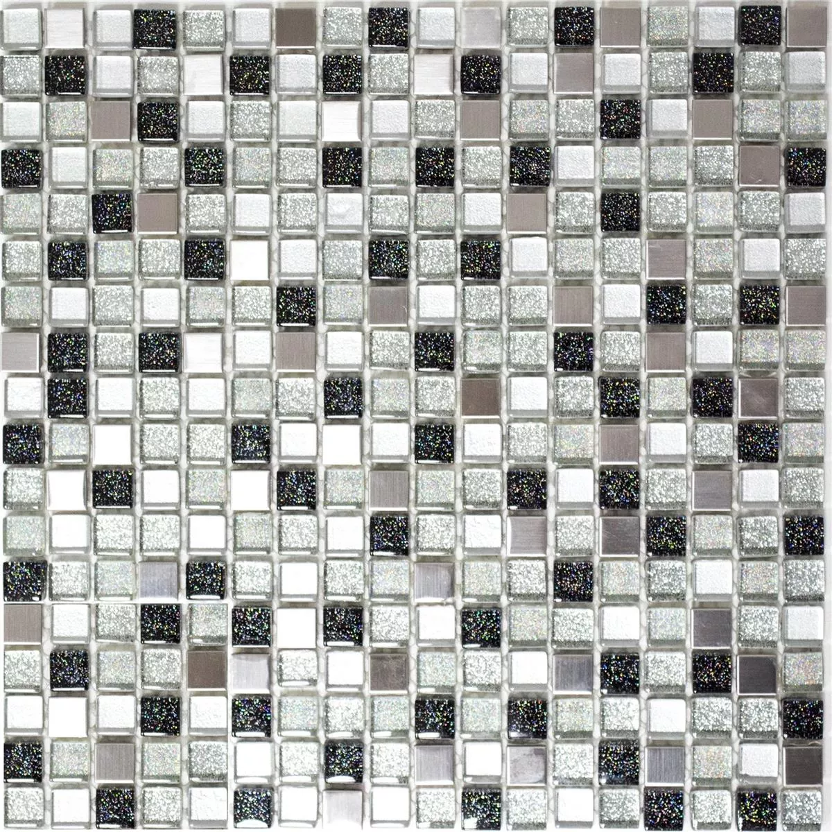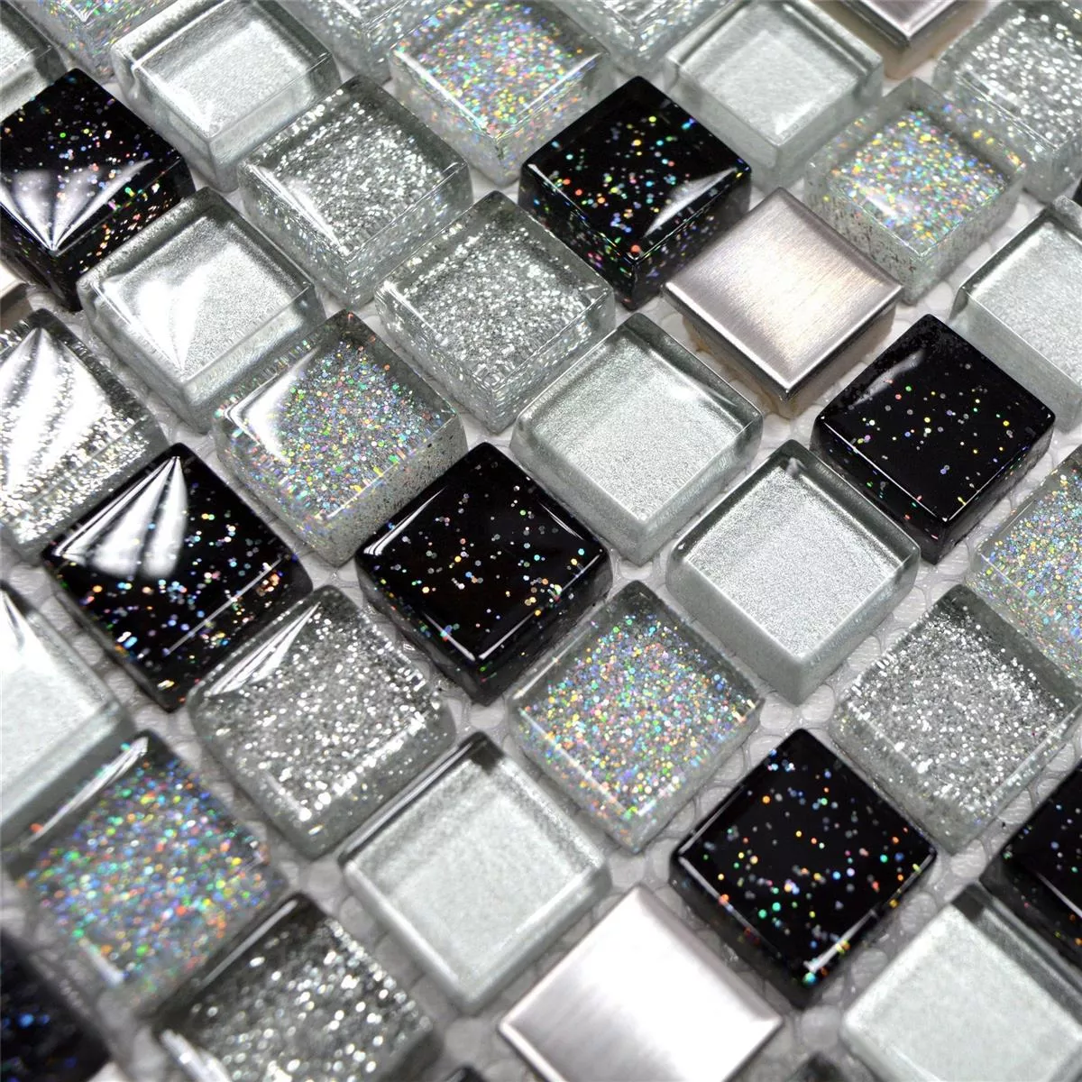 Glas Rostfritt Stål Metall Mosaik Silver Svart