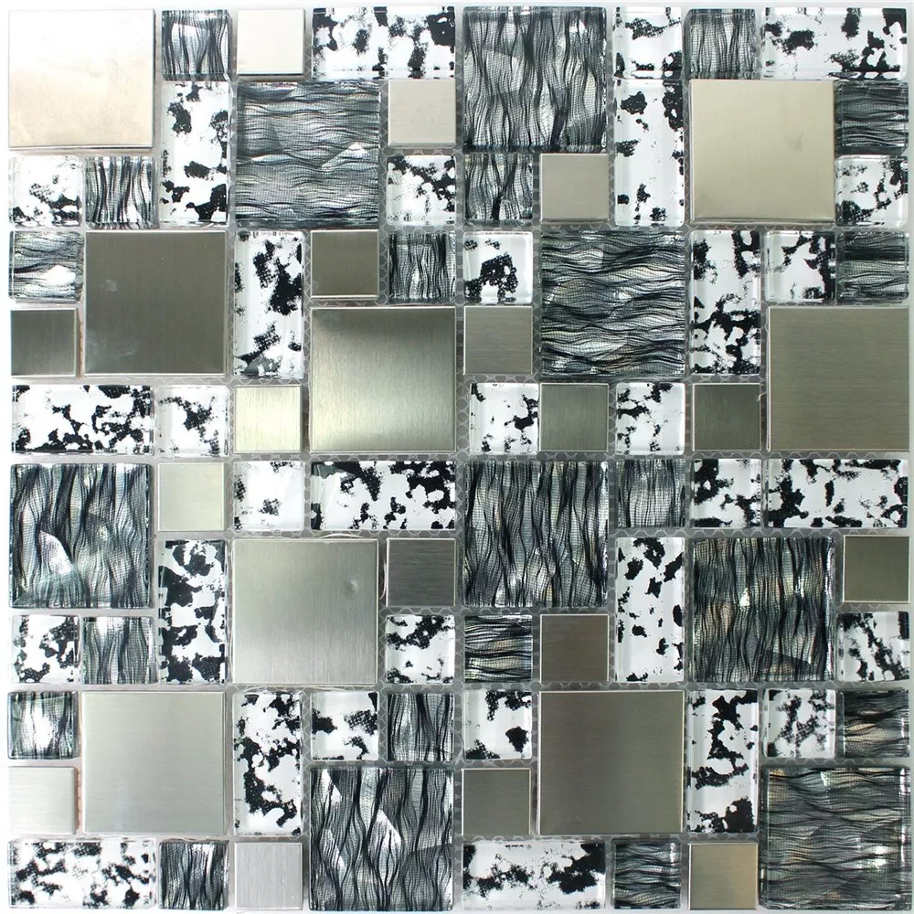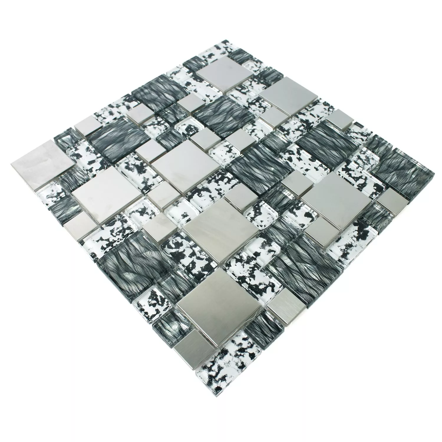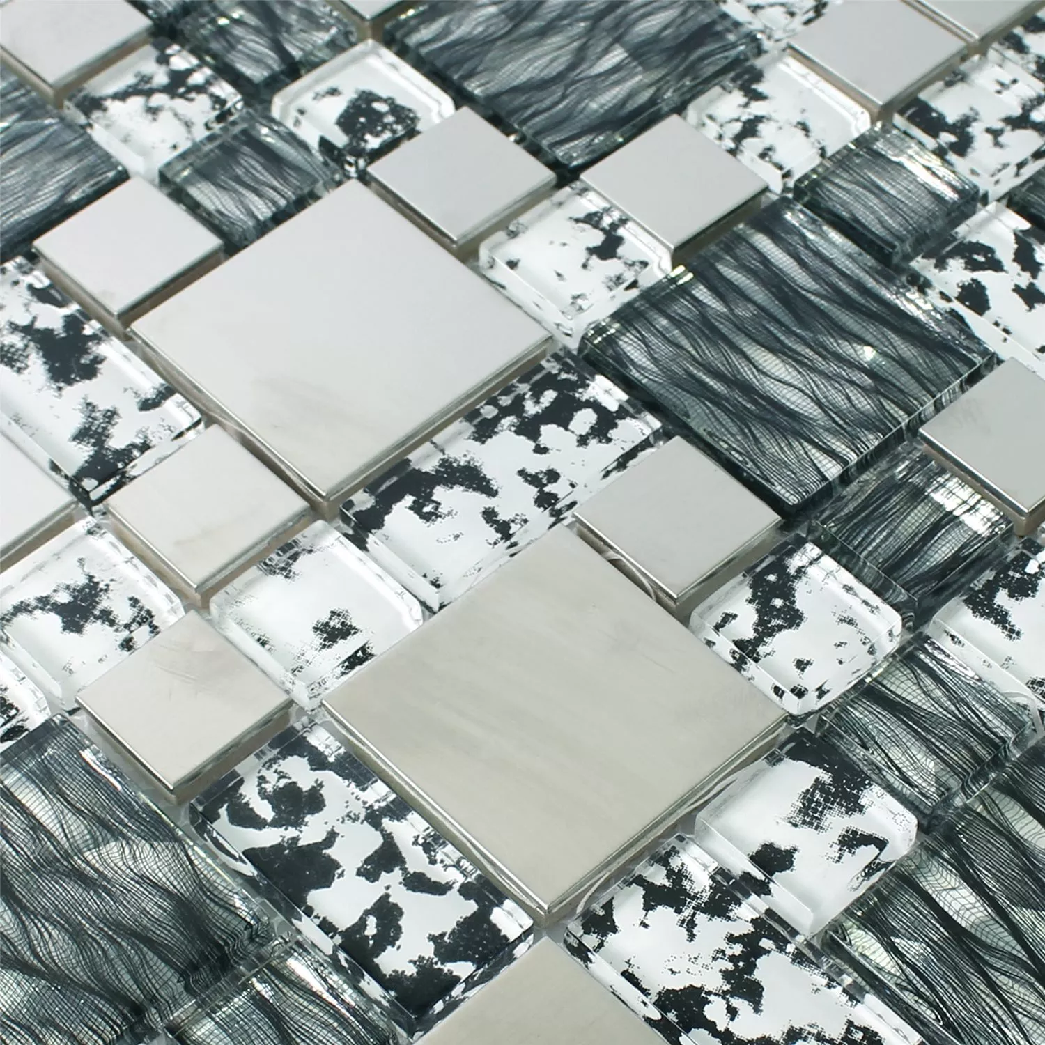 Glas Rostfritt Stål Mosaik Rio Svart Silver Vit