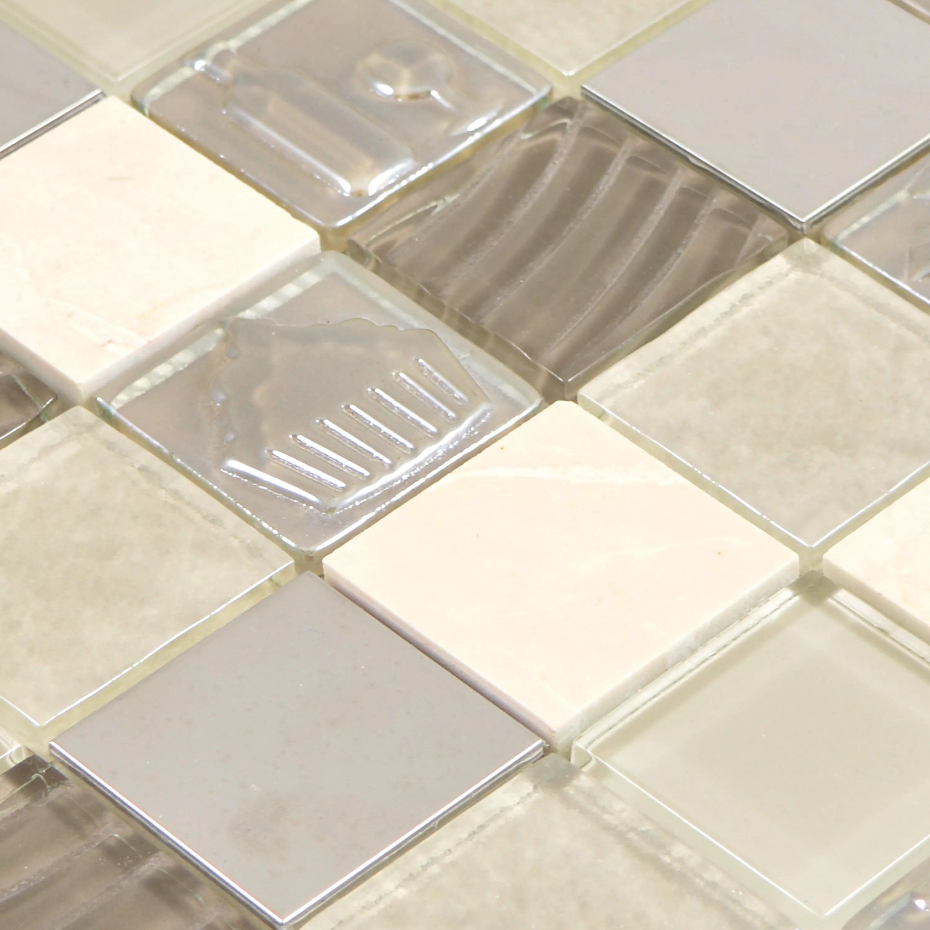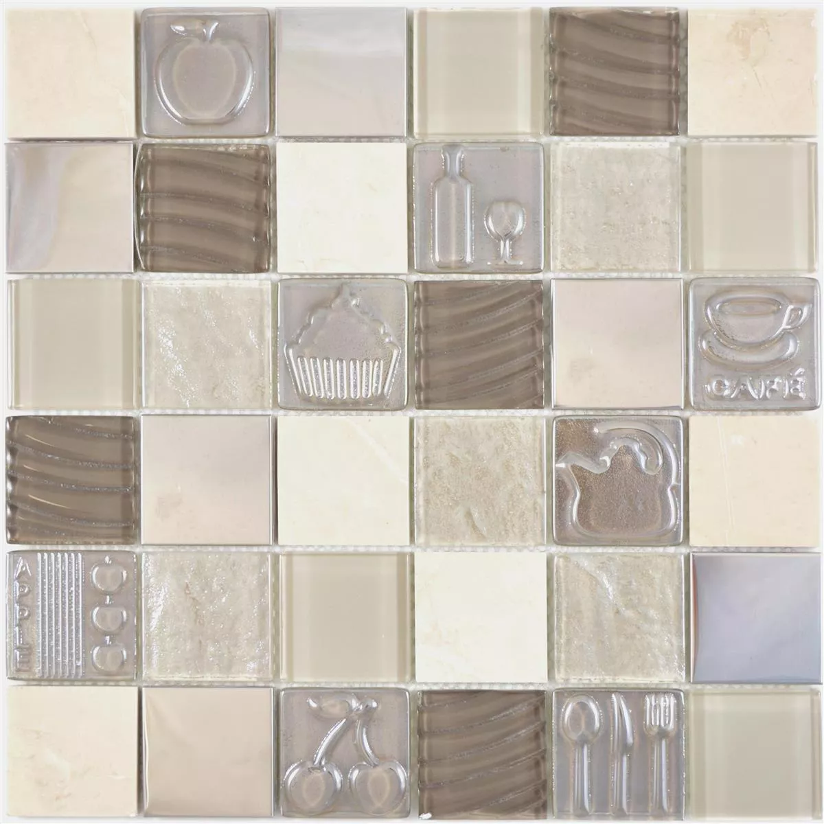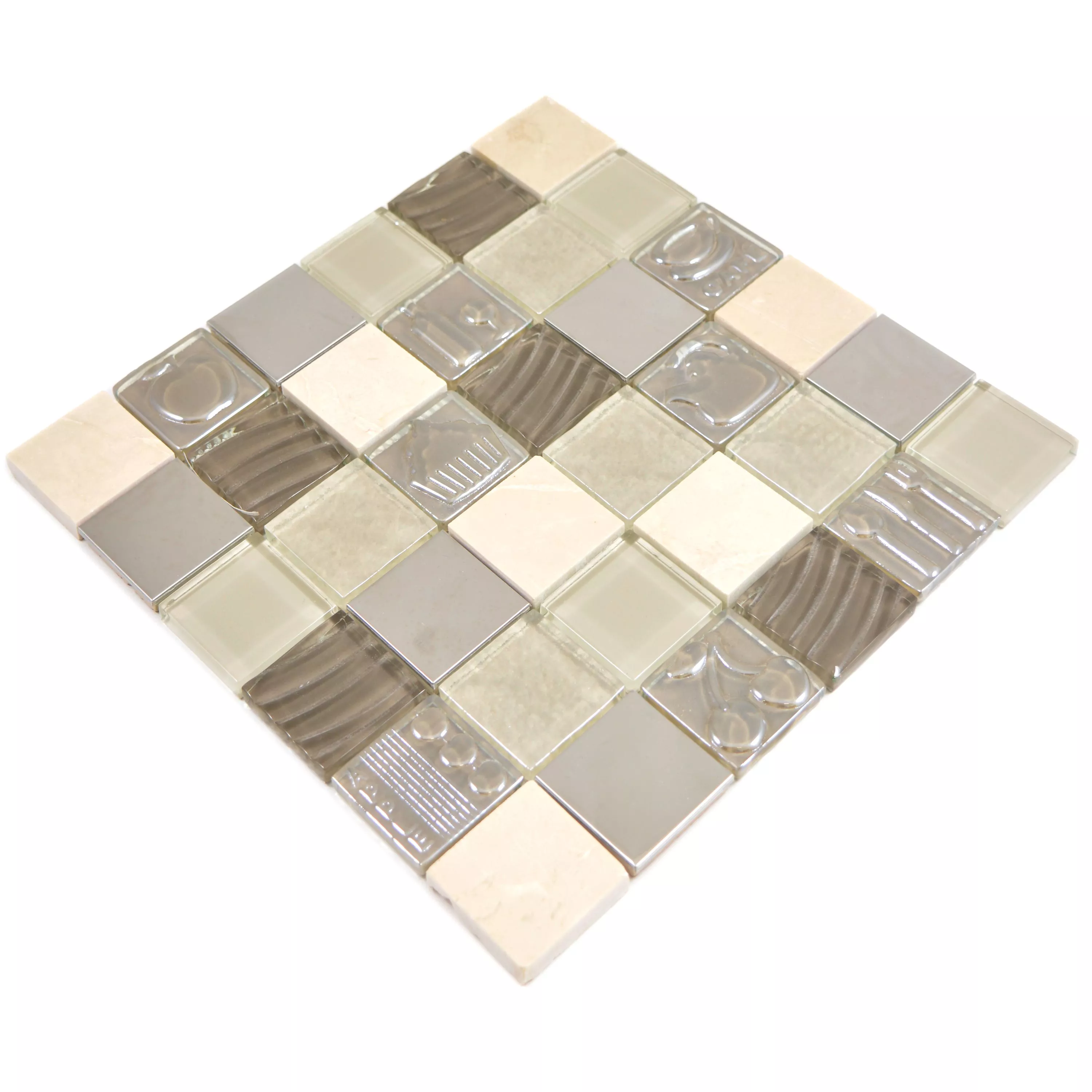 Glas Rostfritt Stål Natursten Mosaik Emporia Brun Beige Silver