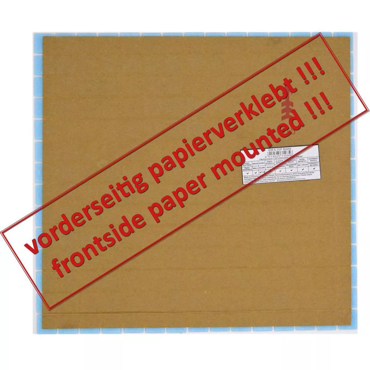 De fyrkantiga plattorna har en total storlek på 32,7x30,5cm och består av små stenar som mäter 20x20mm och en fogbredd på 2mm. Med en tjocklek på 4 mm och en vikt på bara 0,65 kg per förpackning är de lätta att hantera och installera. Tack vare papperslimmet på framsidan är installationen extra enkel och exakt.