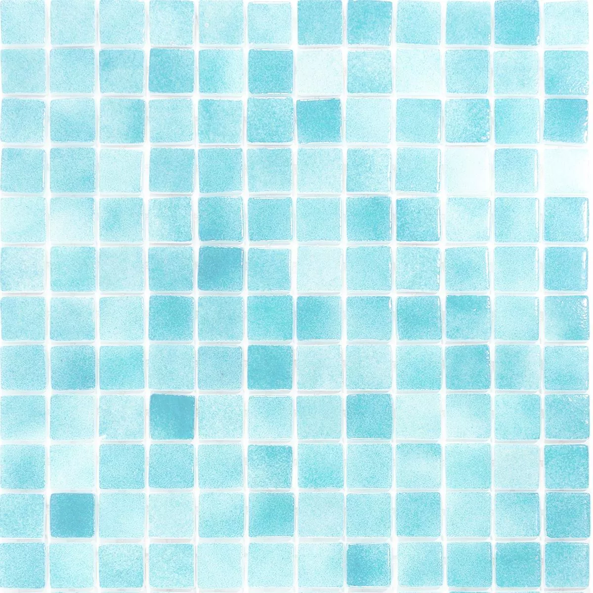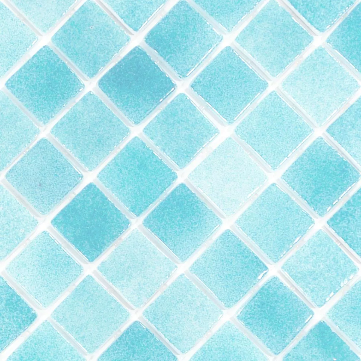 Våra glaspoolmosaiker Lagoona i ljusblått kommer att förvandla ditt poolområde, dusch eller kök till en oas av elegans.