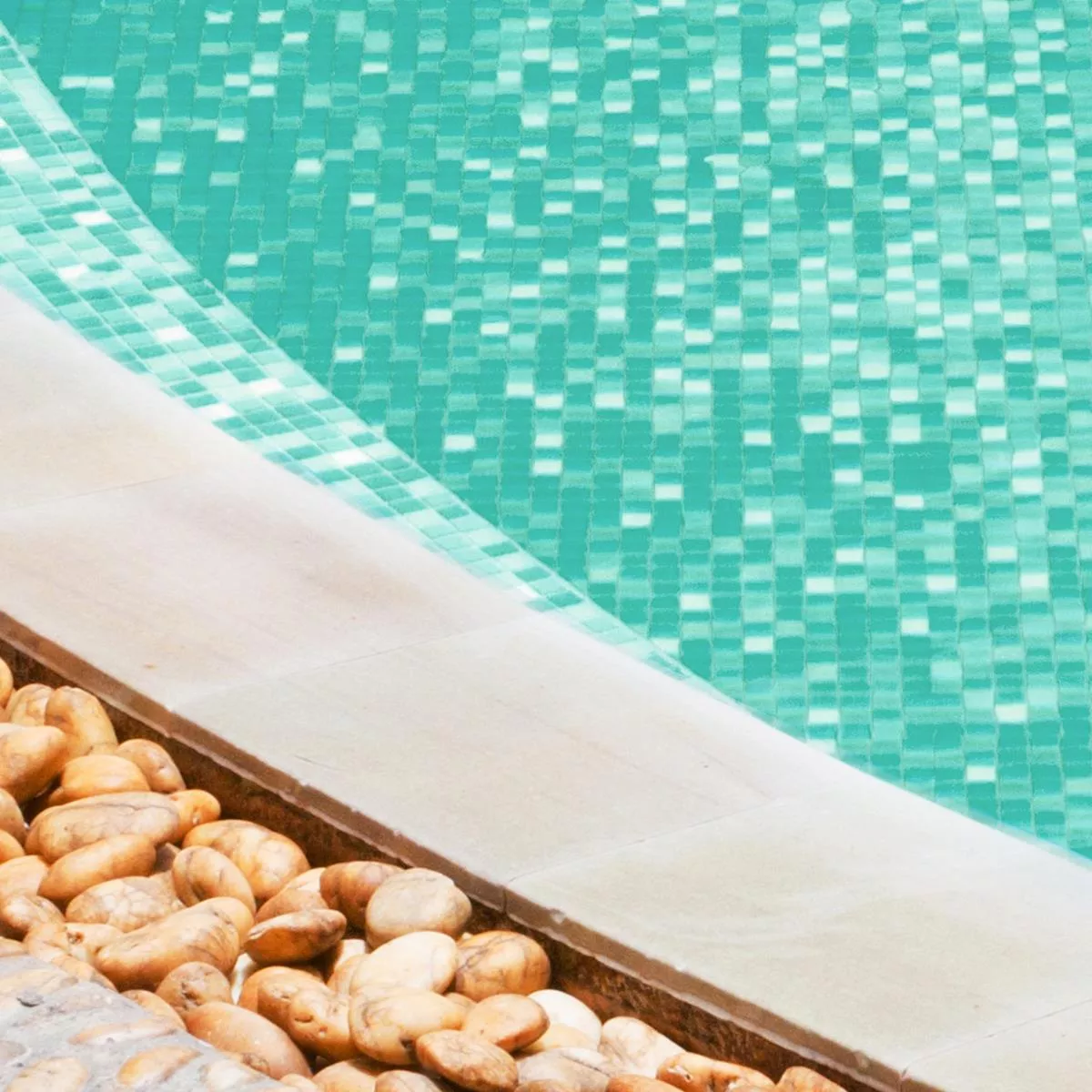 Glaspoolmosaiken Lagoona i livfull turkos ger den klara, ljusa atmosfären av en turkisk lagunpool direkt in i ditt hem.
