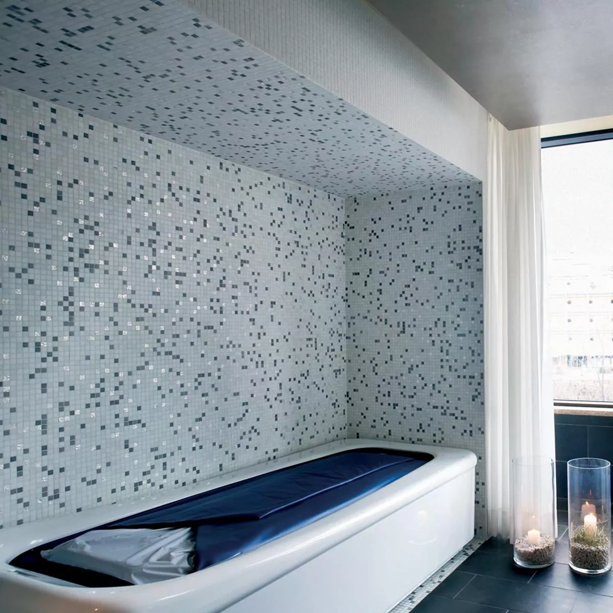 Vitreo 161 mosaikplatta i ljusgrått av glas kombinerar snygg design med hög funktionalitet. Den är idealisk för golv och väggar i kök, badrum, pooler, simbassänger och utomhusområden. Deras frostbeständighet gör dem extra robusta och perfekta för permanent våta områden.