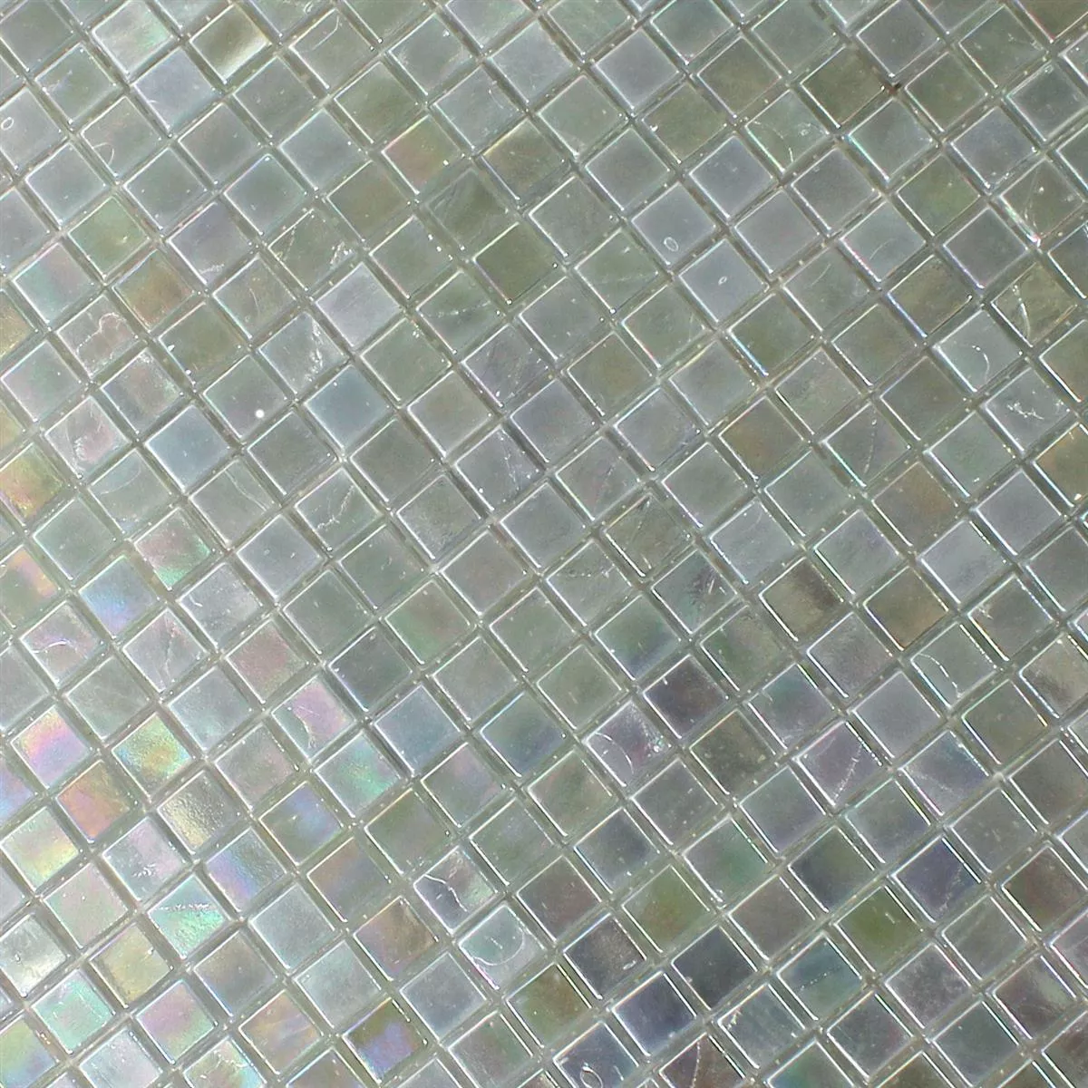 Jämfört med de kraftfulla blå och röda, verkar pärlemoreffekten av varianten "White Beige" nästan delikat. De vita glasmosaikplattorna används bara som bakgrund för att få fram det bästa av de blåaktiga, gulaktiga, rosa och andra pastellfärgerna. Färgen på "Amazon" är svår att klassificera. Dessa plattor är mörkare än de vita mosaikplattorna, men i direkt jämförelse med de röda och blå plattorna är "Amazon"-varianten mer subtil.