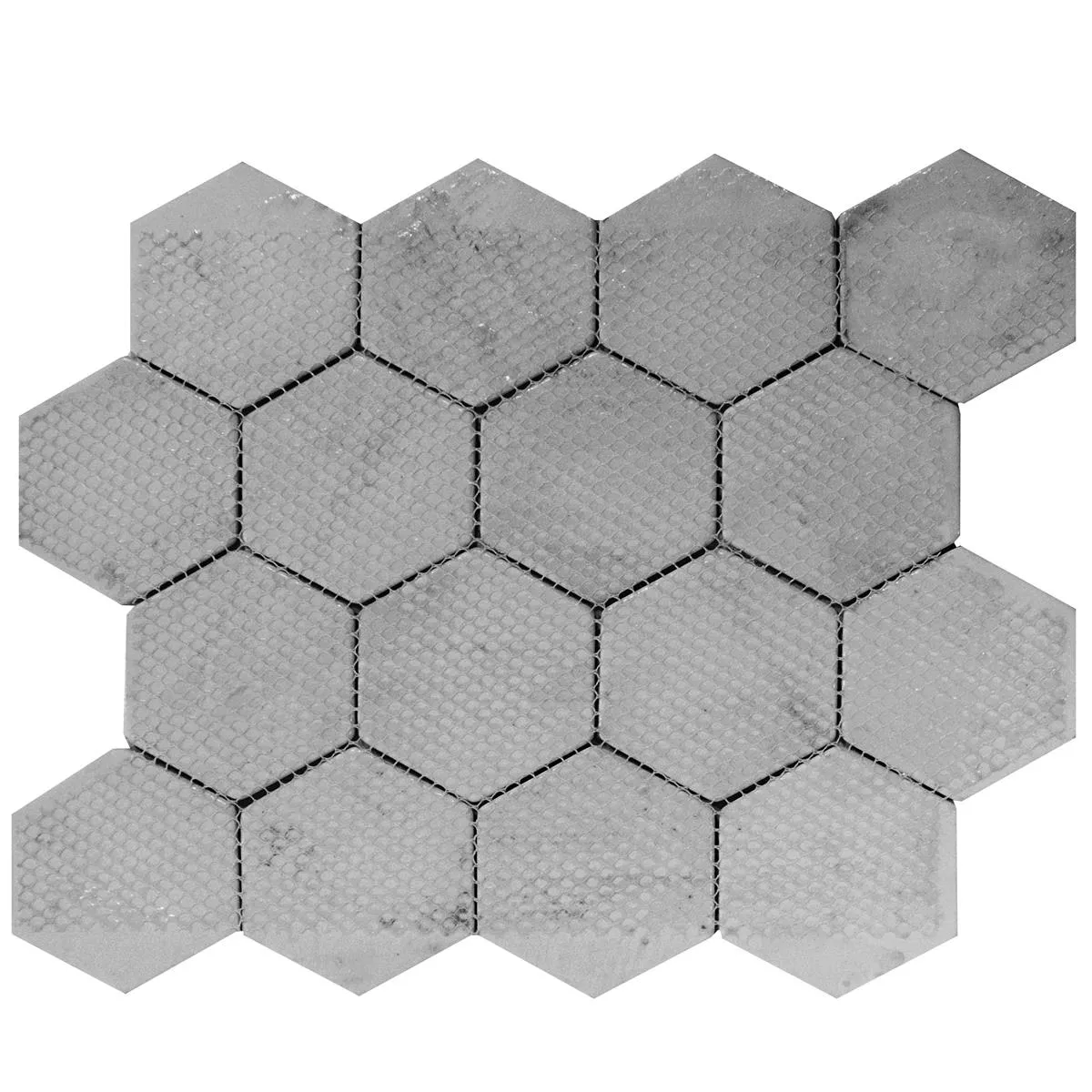 Plattorna har en stenstorlek på 73x83mm och en tjocklek på 6mm. Kakel- eller mattans storlek är 26x29,6 cm, med en matta som täcker en yta på 0,077 m². Sexkantformatet, fogbredden på 3 mm och vikten 1,23 kg per styck gör hanteringen enkel.
