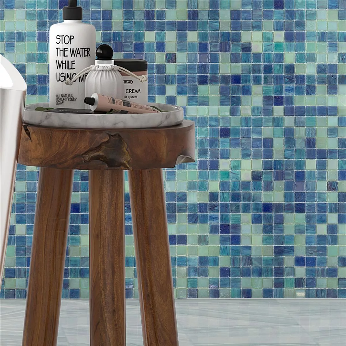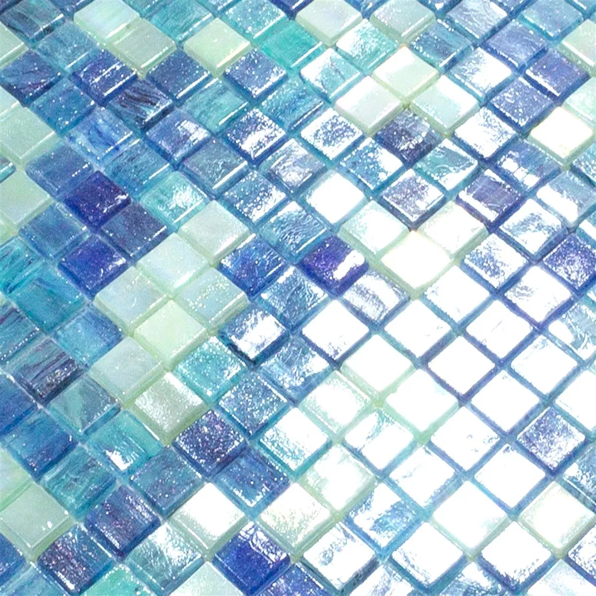 Carla glasmosaikplattor i de attraktiva färgerna turkos och blått ger dina rum en maritim atmosfär och ger en cool, modern touch.