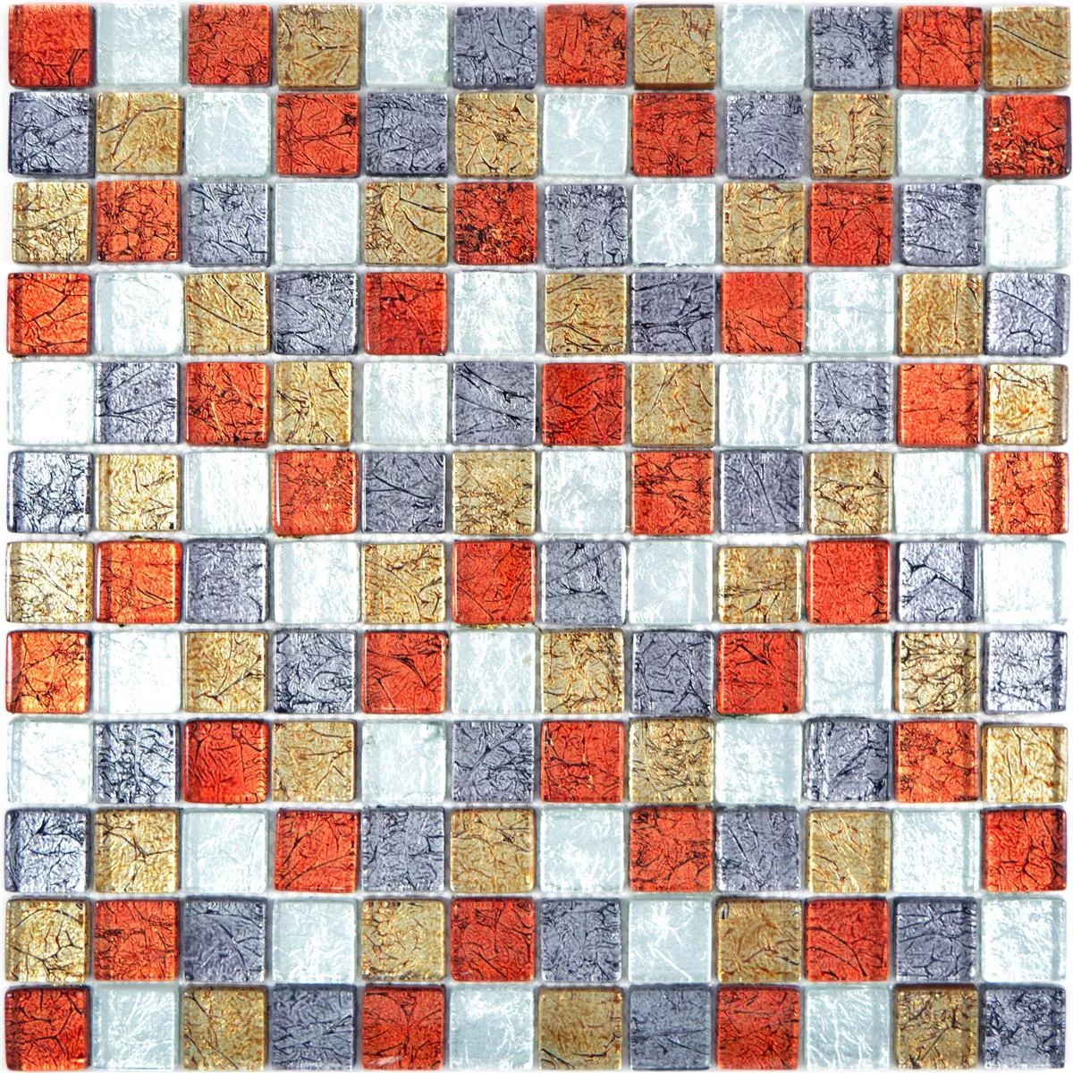 Glasmosaikplattor är populära och kan köpas i en mängd olika stenstorlekar och mönster. Mosaikplattorna Curlew är av intresse för köpare som letar efter kakelmattor av hög kvalitet och vill välja mellan olika stenstorlekar. Plattorna finns i olika färger. I färgversionen röd beige silver. Mosaikplattan är gjord av glasmosaik som har ett metalliskt utseende. På grund av den metalliska glansen ser ytan väldigt stilig ut.