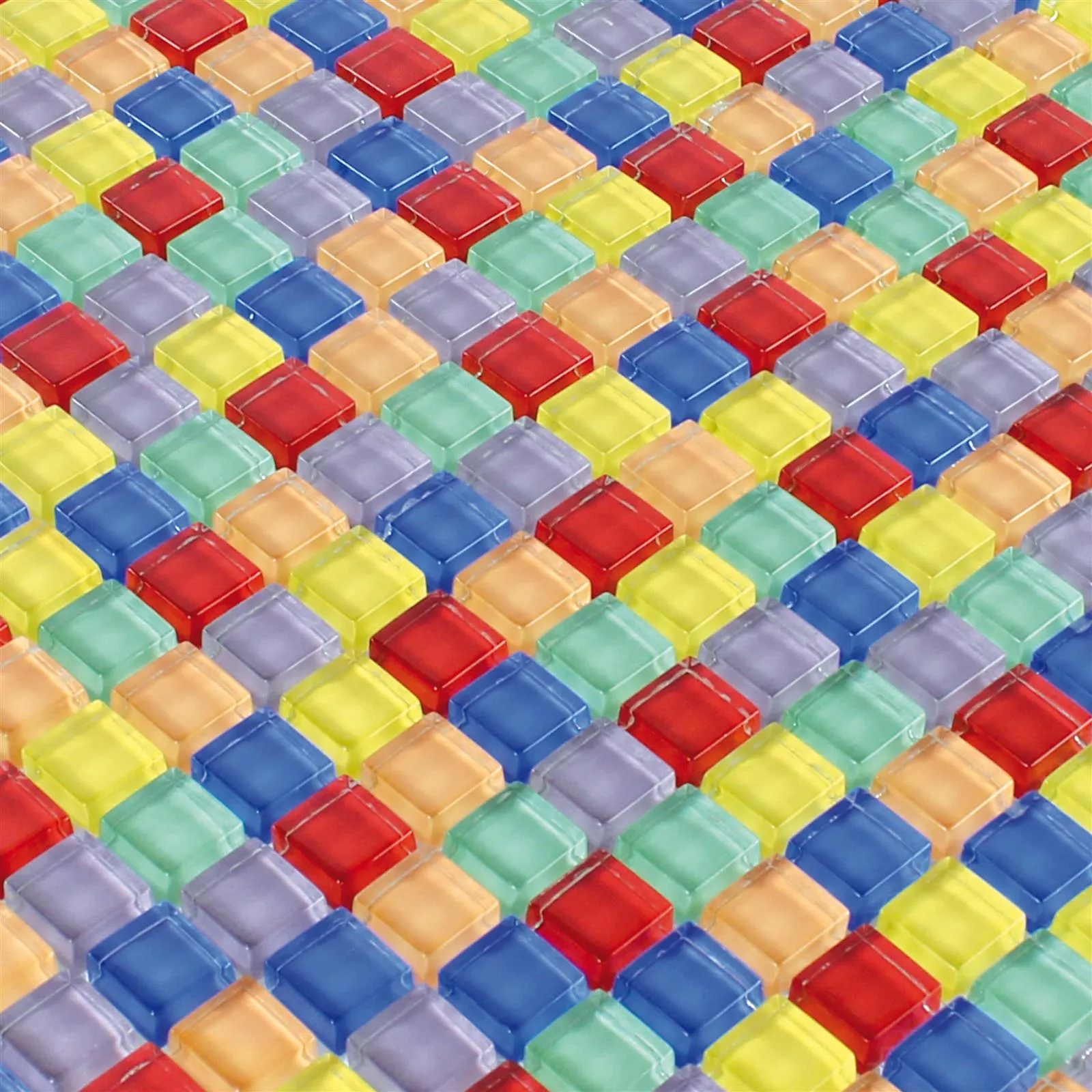Fredonia glasmosaikplattor är färgglatt blandade på bärmattan. De är blanka och lämpliga för våta områden.