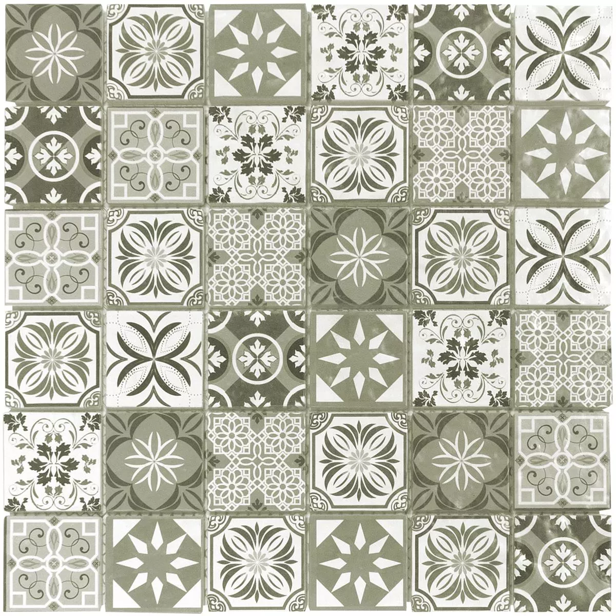Glasmosaik Plattor Magnolia Ornament Ljusbrun