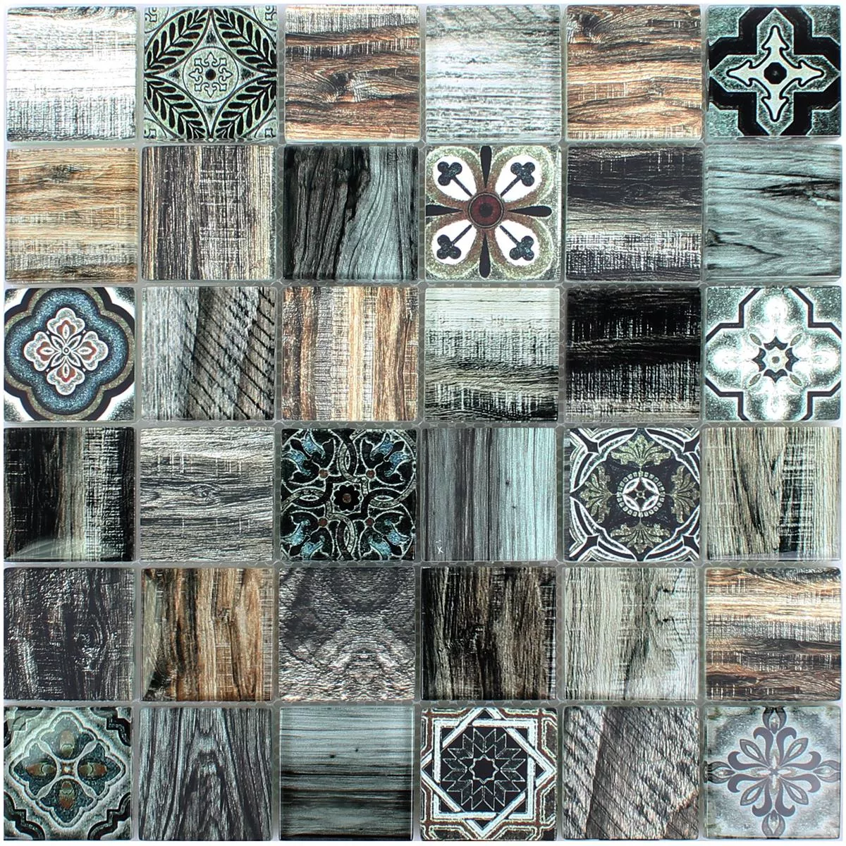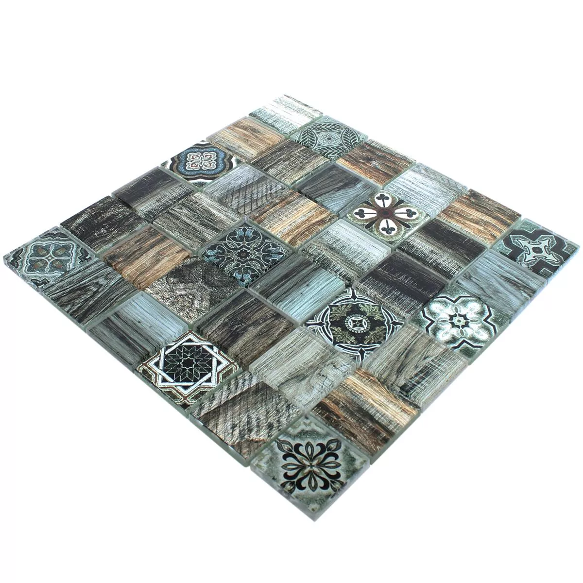 Det ser ut som trä, men det är faktiskt glas! Vi pratar om Makarska glasmosaikplattan. Det är en väggplatta av glas, som har en vacker trälook. Den brungröna mosaikplattan har ett mångsidigt mönster, så att ögat alltid ser något nytt.