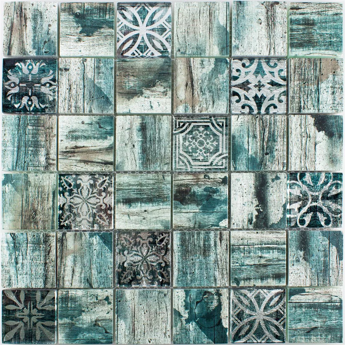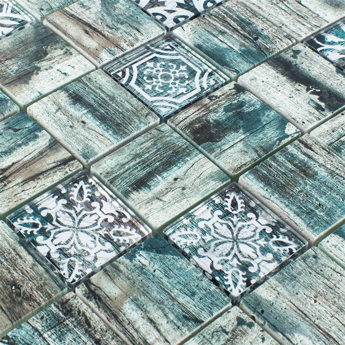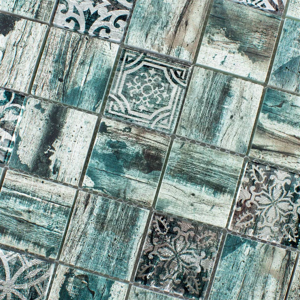 Glasmosaik Plattor Träimitation Norwalk Grå Brun Grön Q48