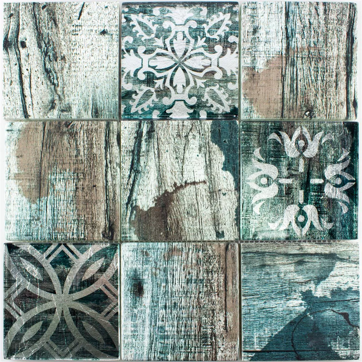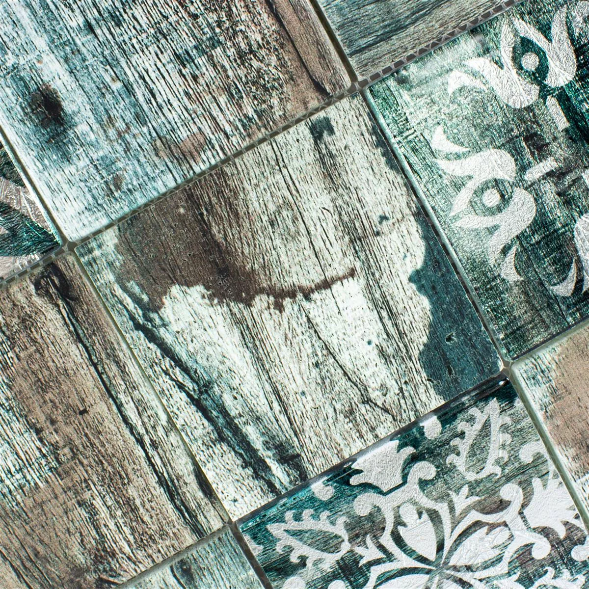 Glasmosaik Plattor Träimitation Norwalk Grå Brun Grön Q98