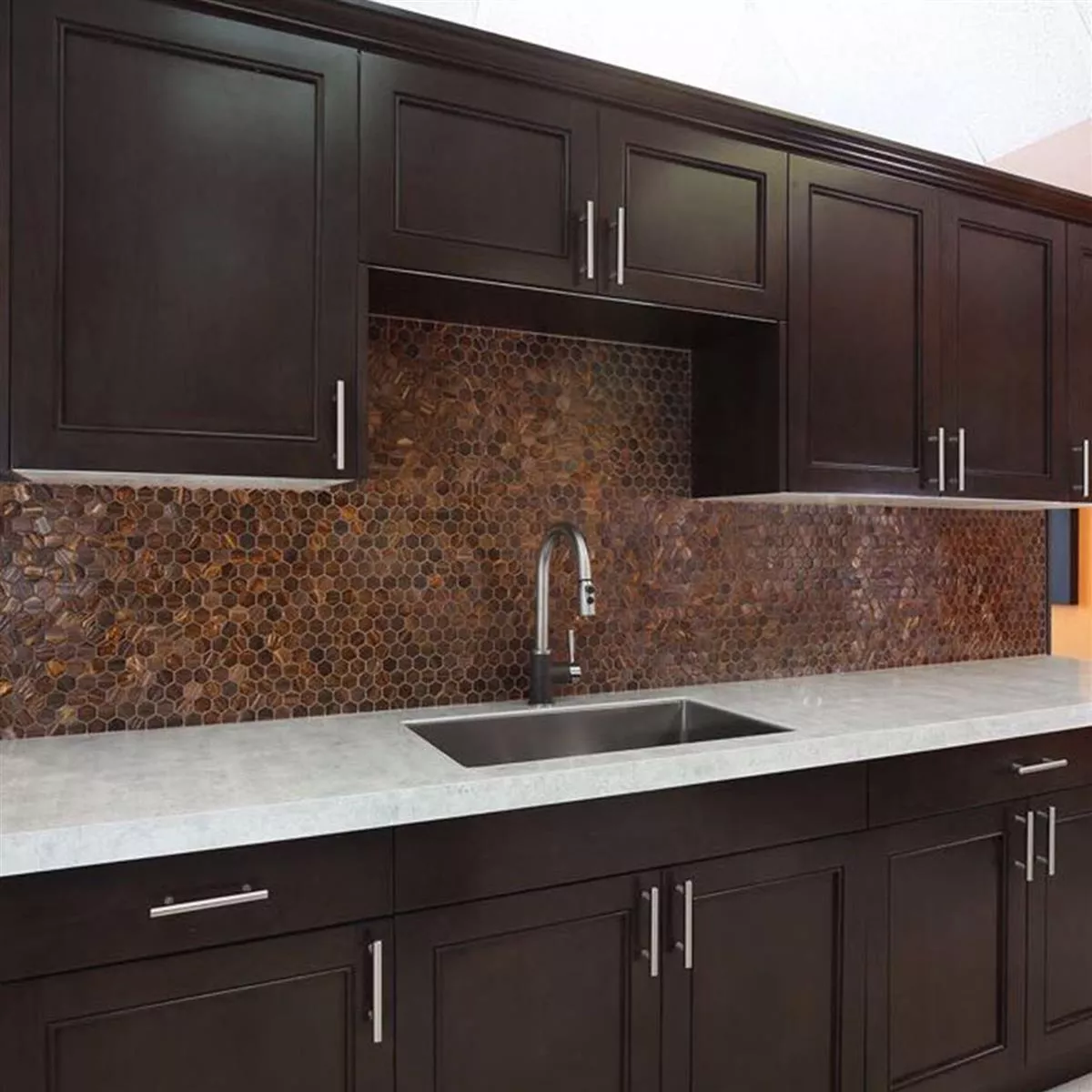 En speciell fördel med denna kakelserie är att baksidan är limmad till ett polyuretannät, vilket förenklar installationen. Oavsett om den används i kök, badrum, vardagsrum eller andra rum i ditt hem, kommer glasmosaikplattorna från Hexagonal-serien att skapa en riktig höjdpunkt i vilket rum som helst.
