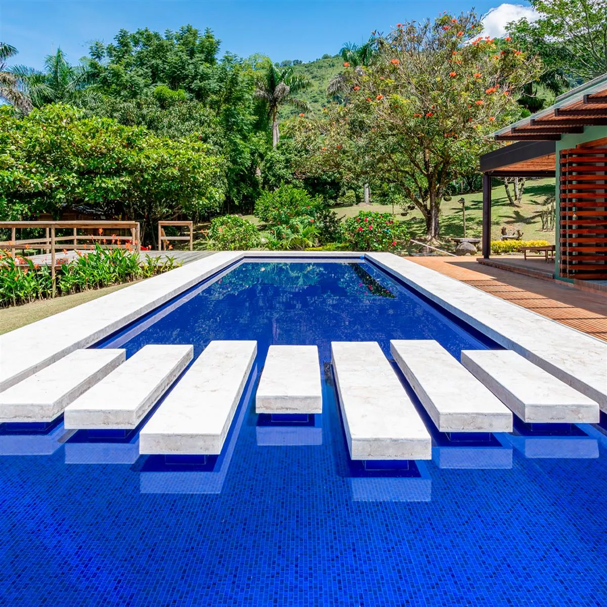 I och runt simbassänger, där plattorna kontinuerligt utsätts för fukt, erbjuder de det nödvändiga motståndet.