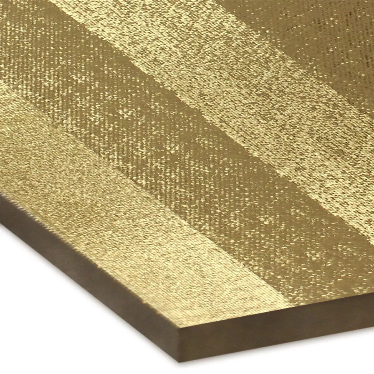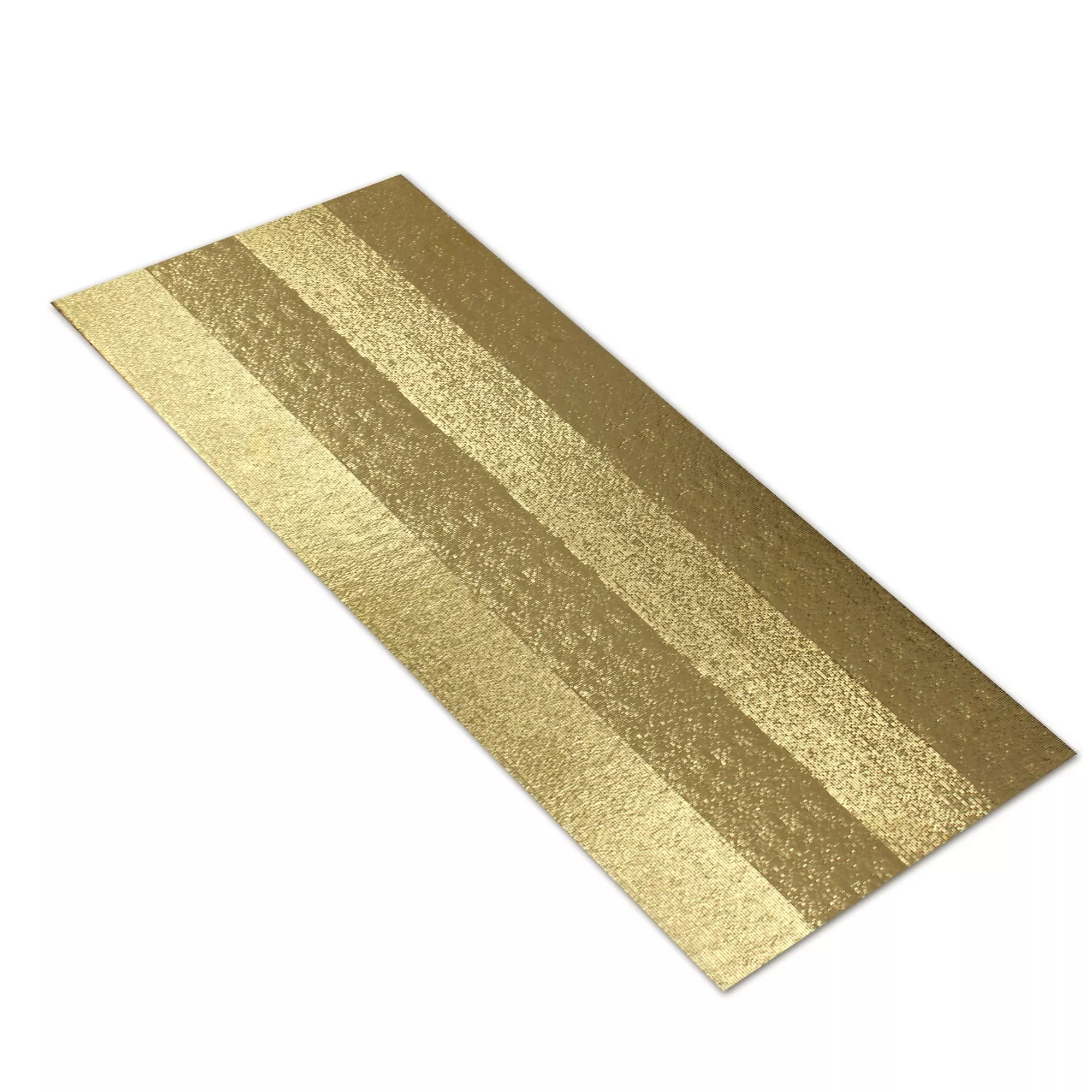 Den dekorativa väggplattan Melody i guldstruktur 25 x 75 cm är en keramisk platta och erövrar privatlivet mer och mer på grund av sitt moderna utseende och sina optimala tekniska egenskaper. Den erbjuds i storleken 25 x 75 cm och en tjocklek på 9,5 mm. Den här kakelserien finns även i färgerna vitt, silver och guld. Den har en blank yta, vilket gör att badrumsplattorna ser extra eleganta ut. Den tillverkas rätad, dvs med exakta 90 graders vinklar, så att den kan läggas med endast en smal fogbredd.