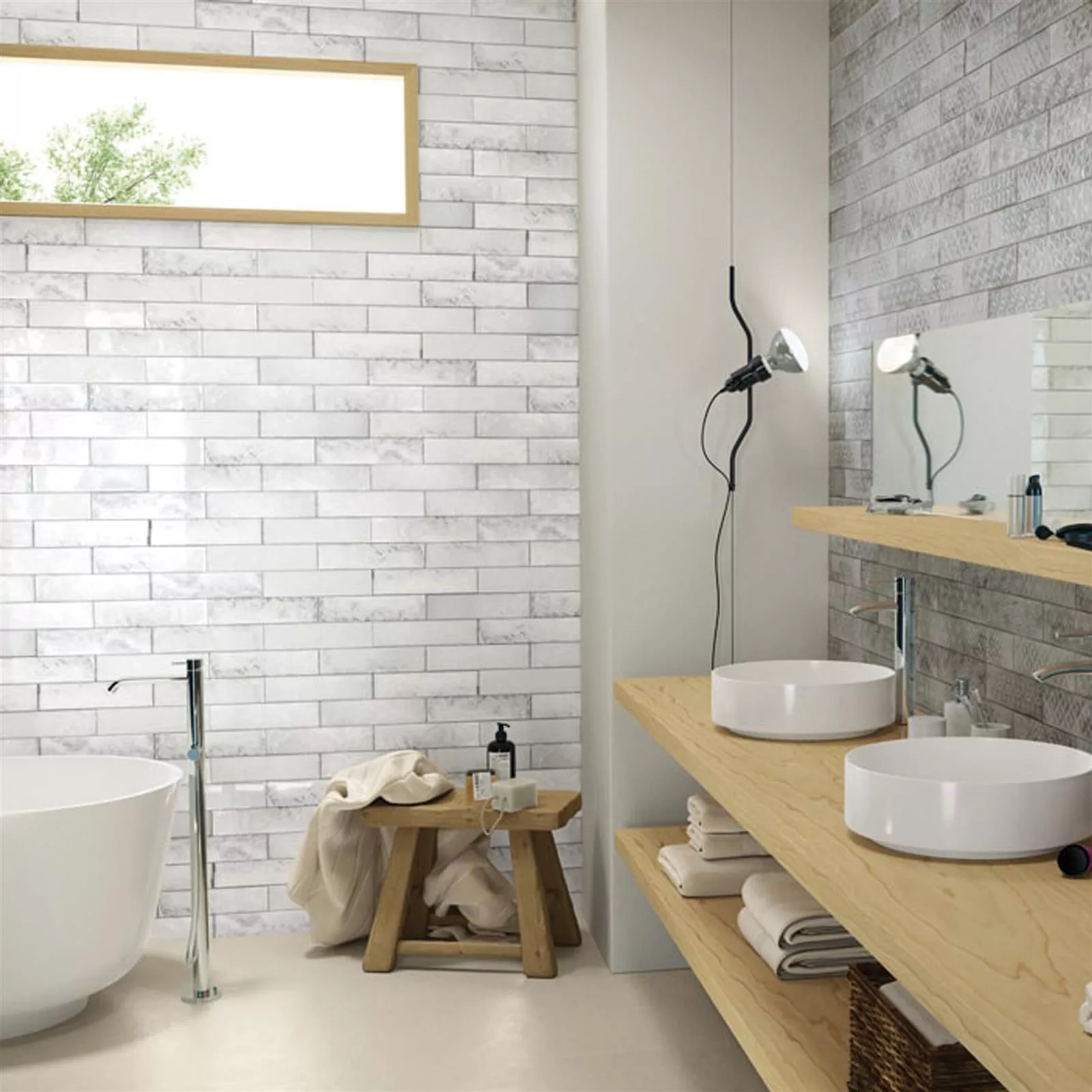 Den första väggplattan är en glänsande stengodsplatta. Ytan är inte bara blank, utan har även en lätt vågig struktur. Detta gör att solljuset bryts av på kakelytan och skapar en fantastisk gnistra. Ändå bländar inte plattorna! Väggplattan med naturlig kant i silver kan enkelt kombineras med de andra färgerna. På grund av dimensionerna kan plattan användas på en mängd olika sätt. Den kan användas som vägghylla eller få väggar att se ut som tegel. De gör också ett vackert intryck när de placeras upprätt på väggen. Inte bara köket eller badrummet kan kryddas med det, utan även korridorer och entréer.