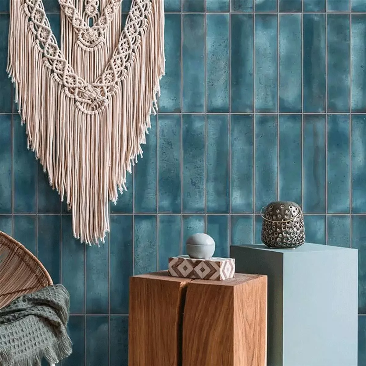 Kiowa blå väggplattor är ett utsökt val för dem som vill lägga till en touch av vintage charm till sitt utrymme. Dessa plattor är gjorda av hållbart stengods och erbjuder en slät, blank yta med en krusad struktur som skapar intressant struktur och djup. Den naturliga kanten och den icke korrigerade konstruktionen bidrar till den autentiska vintagelooken som ger alla rum en tidlös känsla.