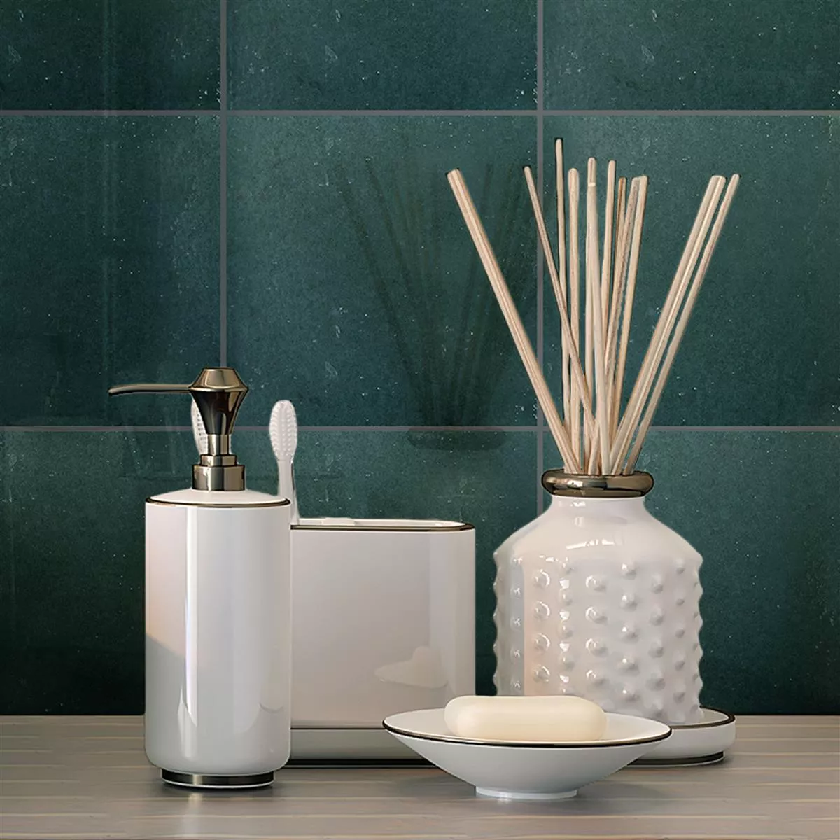 Med en tjocklek på 9 mm och ett kompakt kvadratiskt format på 15x15 cm är denna platta mångsidig för användning i badrum, kök, vardagsrum eller duschar. Dess lämplighet för våta områden gör den idealisk för fuktiga miljöer utan att ge avkall på stil.